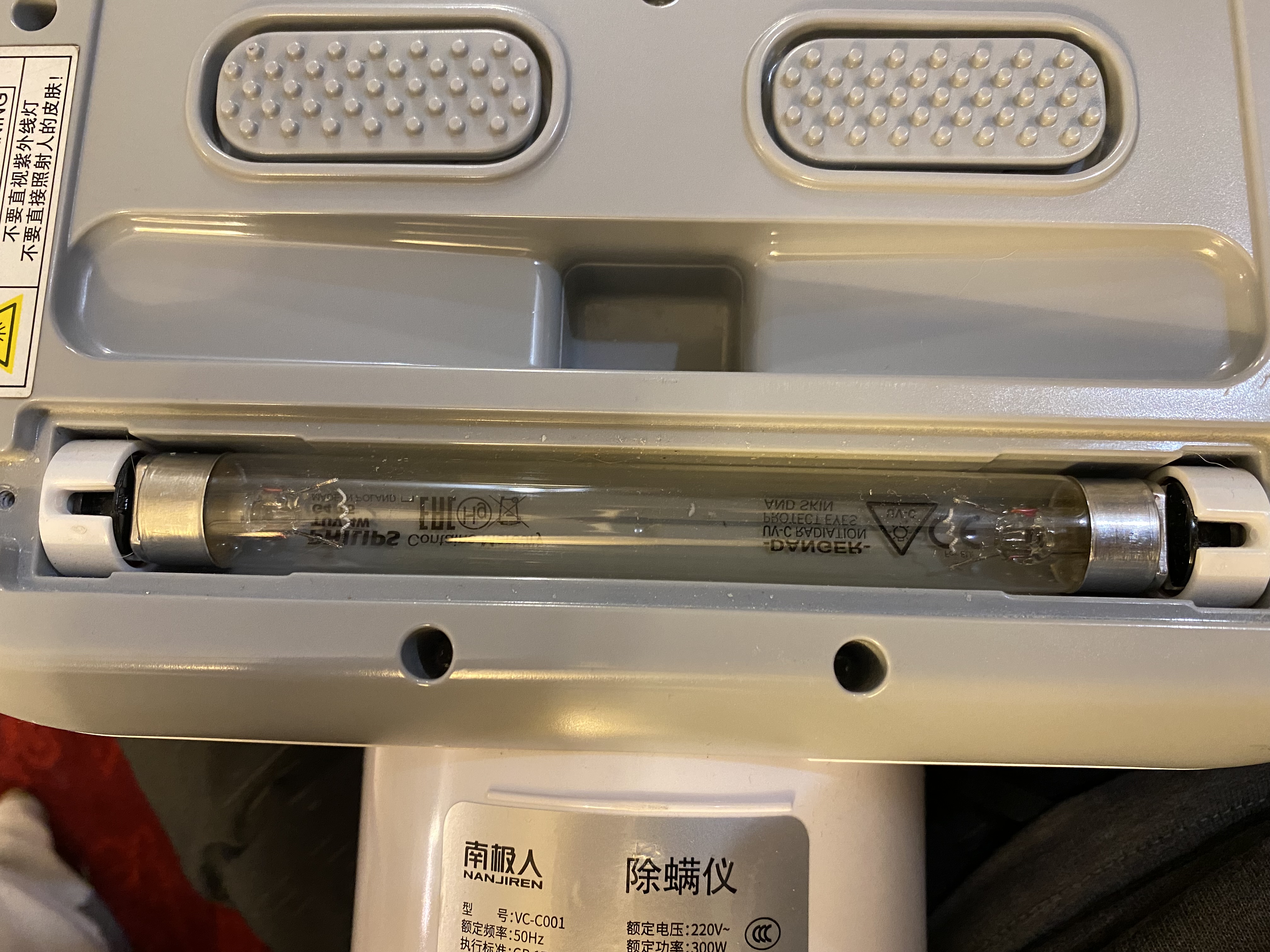 일전에 사서 사용하던 UV 살균 소형 청소기가 언제가부터 UV 램프가 켜지지 않고 있는 것을 알게 되어 UV 램프를 교체하기로 하였다. 청소기의 밑면에 15cm짜리 수은 UV램프가 장착되어 있다. 원래 그런지 모르겠지만, 처음에는 투명했었는데, 시간이 지날수록 양끝에 도금이 되는 것처럼 변해 있었다.