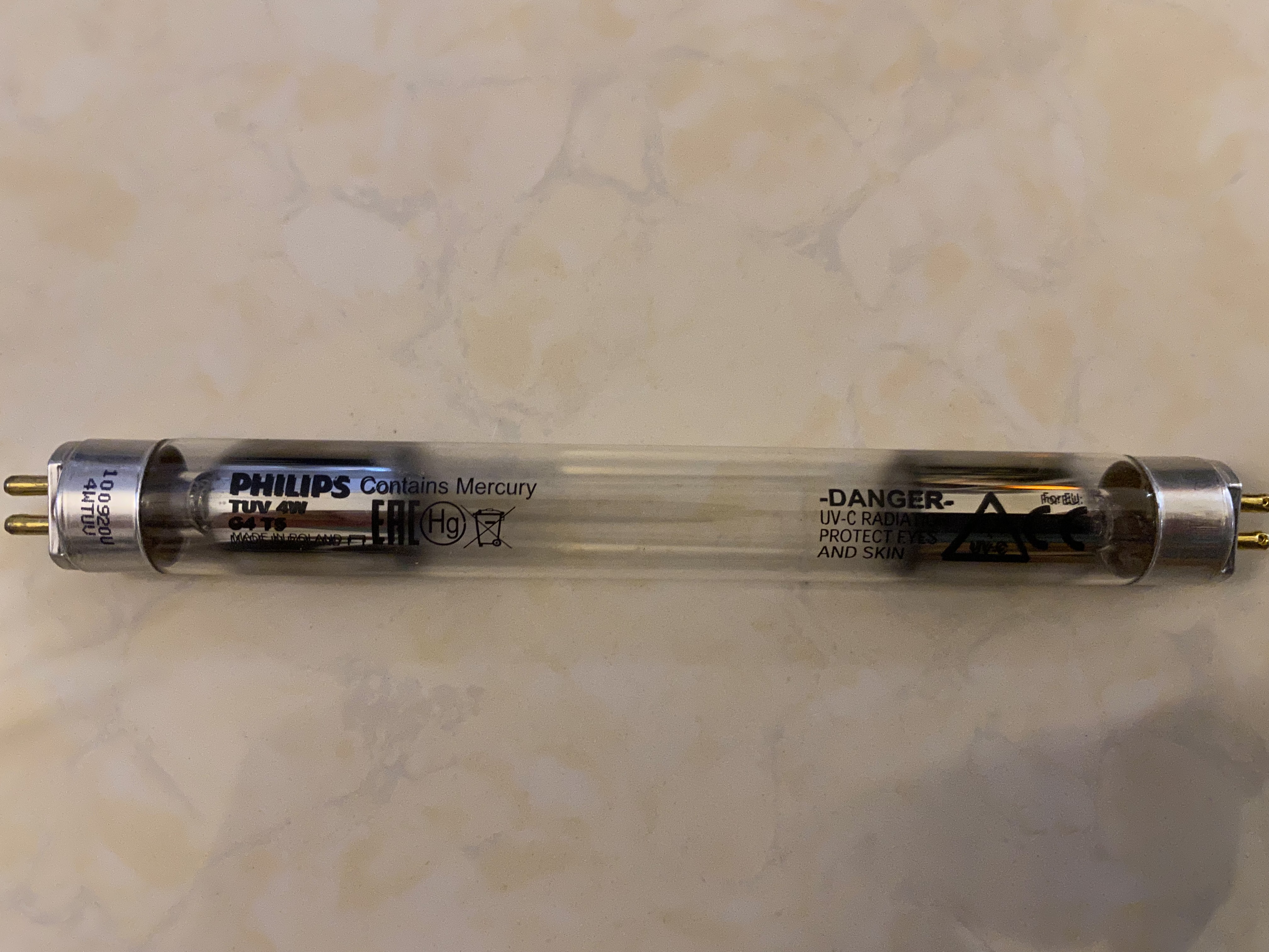 새로 구매한 램프와 비교하면 그 차이가 더욱 선명하다. UV 램프는 상당히 표준화되어 있어서 인터넷에서 5,000원이면 쉽게 구할 수 있다.