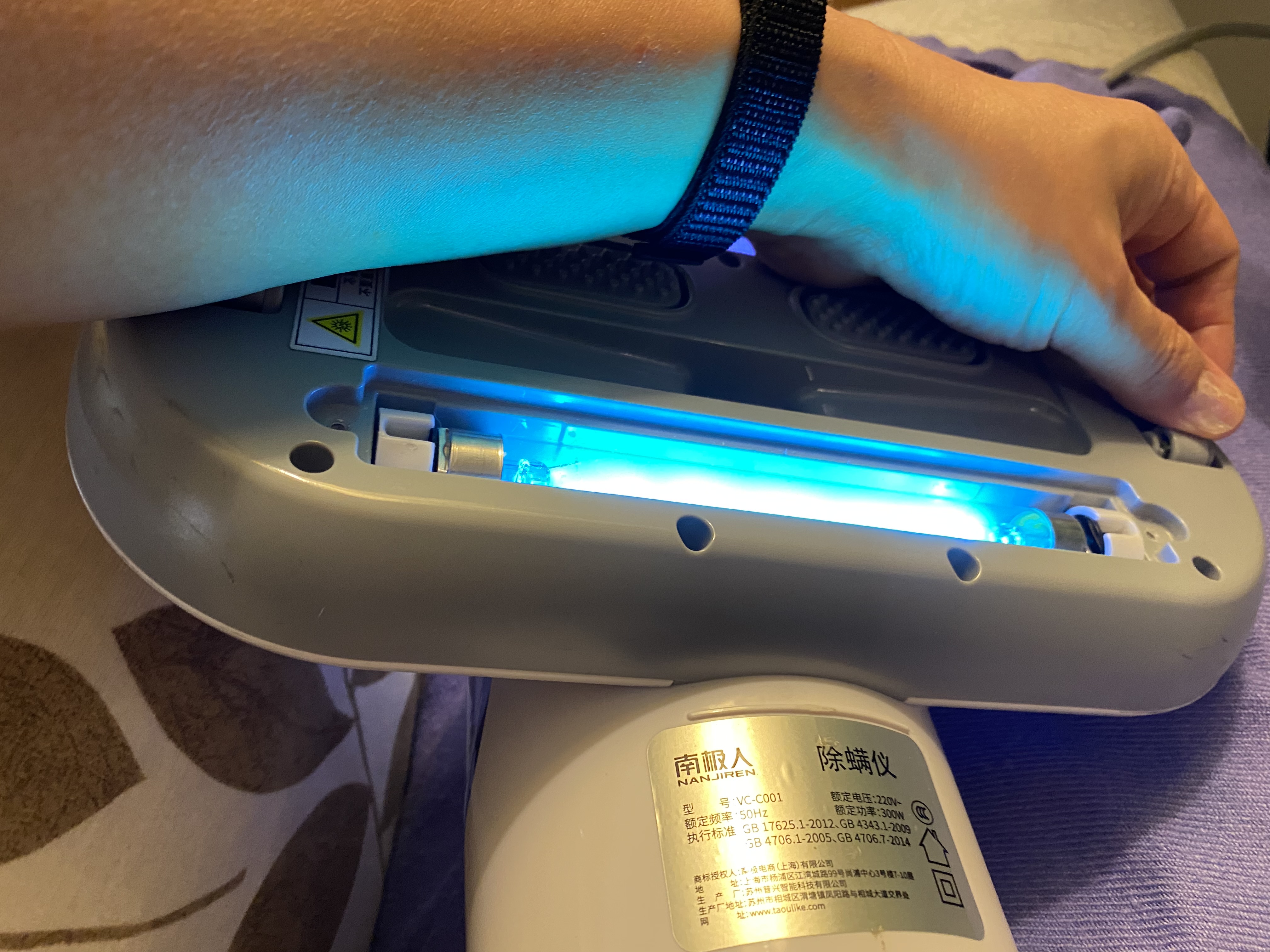램프를 장착하고 테스트. UV의 살균 작용이 세포에 강한 복사열을 쬐서 죽이는 원리인 것과 같이 우리 세포에도 영향을 주기 때문에 UV에 직접적인 노출은 하지 않는 것이 좋다.