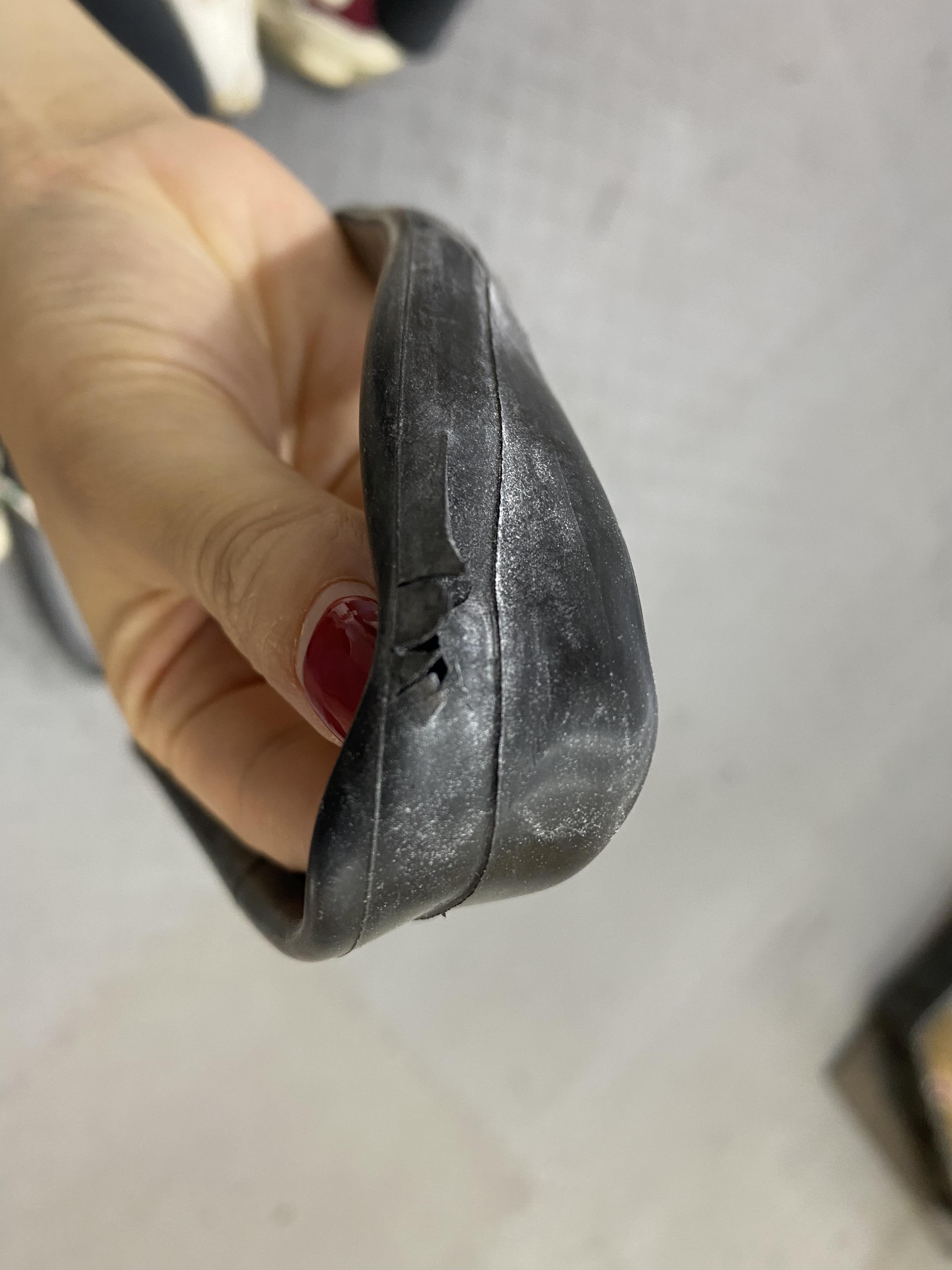 그래서 그냥 자이언트 매장에 가서 튜브를 교체해 달라고 하였다. 금액은 40위안. 안의 튜브를 빼서 보니 완전히 찢어져 버렸다. 타이어안에 제대로 안 들어가고 짖눌렸다가 찢어진 듯 했다.