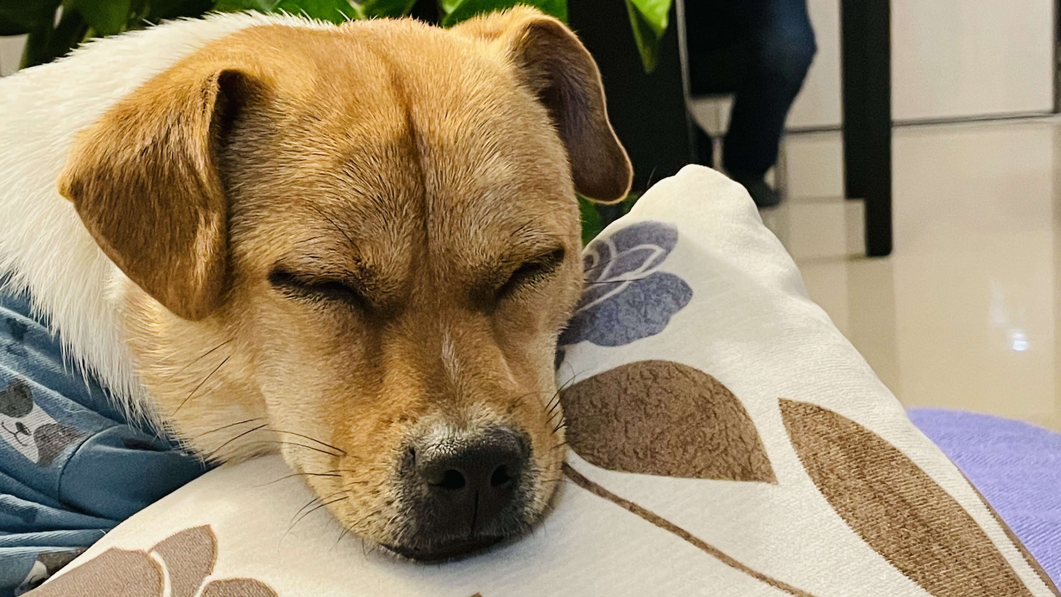 일할 때 종종 옆에 와서 자고 있는데, 베개까지 가져와서 자기 시작했다.