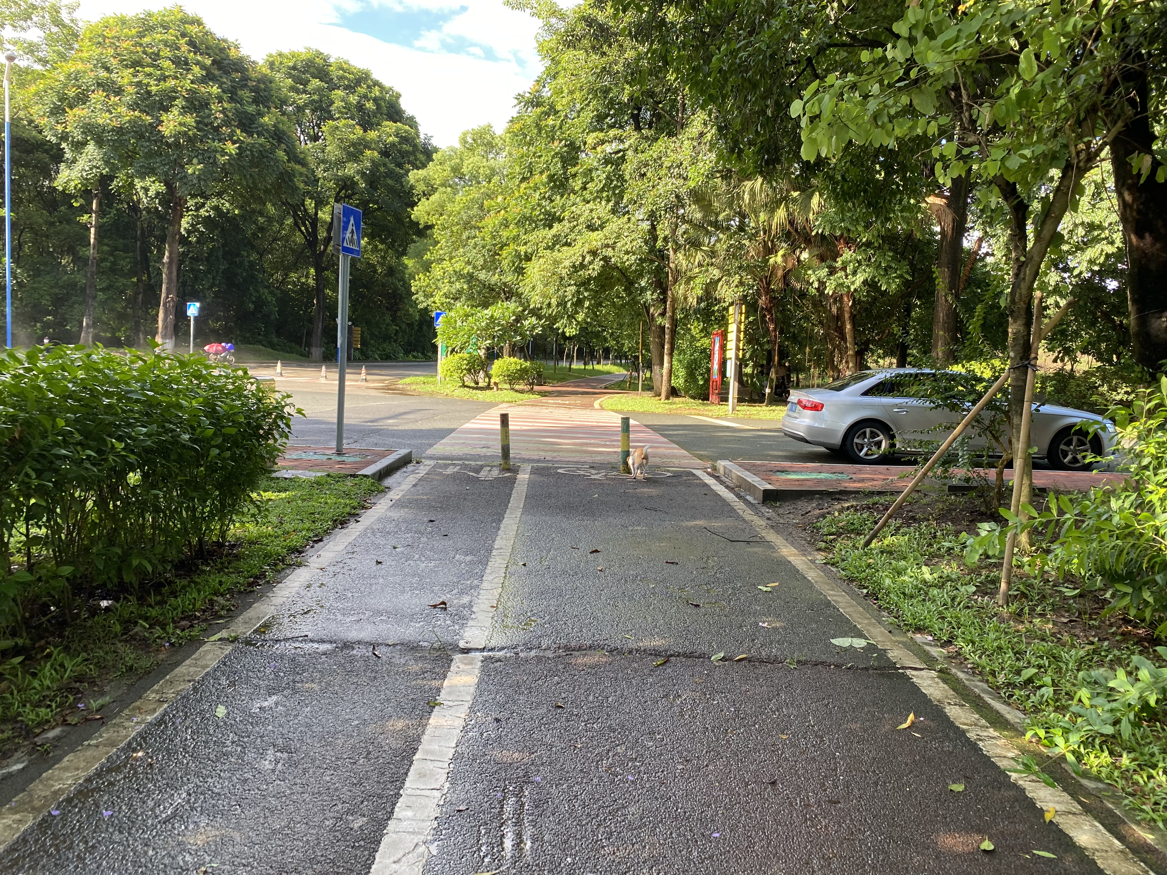 비가 온 뒤, 바로 내리쬐는 햇볕에 바닥에 아스팔트에 있던 물들이 바로 수증기가 되어서 주변이 안개가 내린 듯한 풍경을 만들어 낸다.