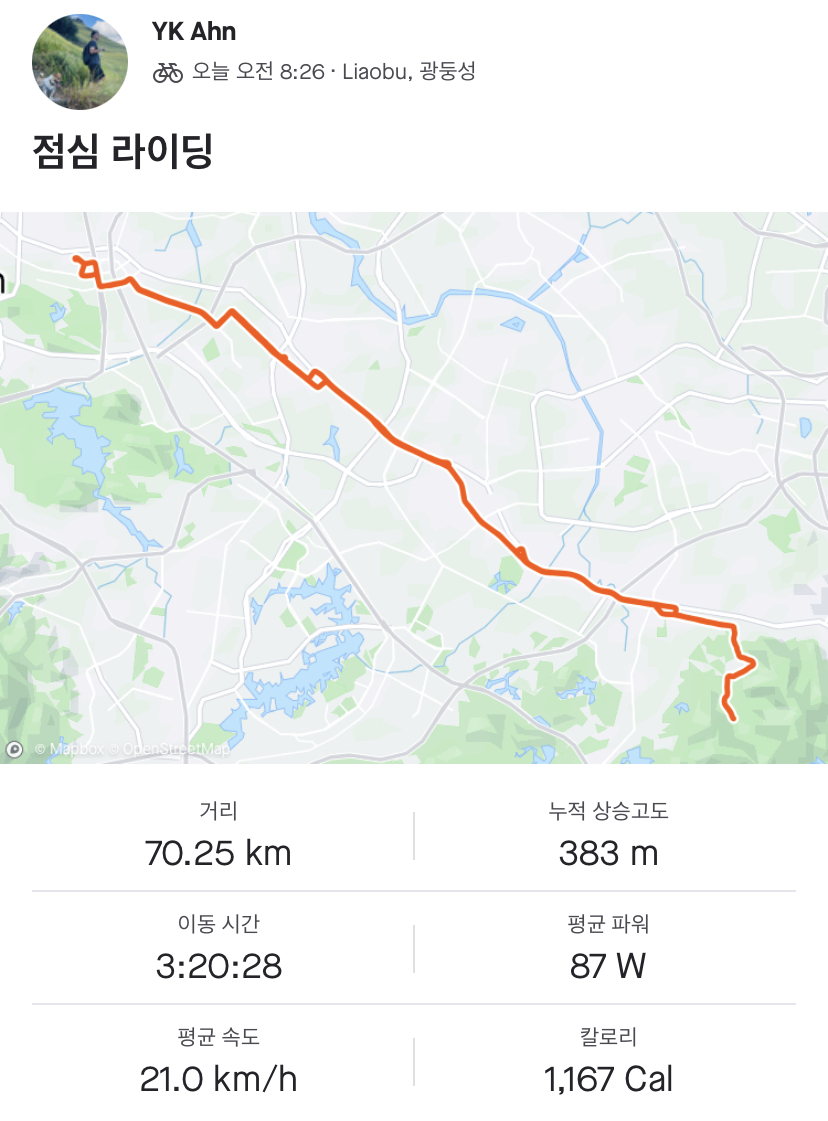 일요일 뜨거운 태양볕을 가르며 다시 혼자서 자전거를 탔다. 목적지는 빠오샨선린공위엔(宝山森林公园)로 집에서 왕복 총 70km정도이다. 이름이 삼림공원이라 숲을 기대했지만, 푸롱스(芙蓉寺, 부용사)라는 사찰을 통과해야 들어갈 수 있어서 사찰 앞에서 잠시 쉬다가 집으로 돌아왔다.
