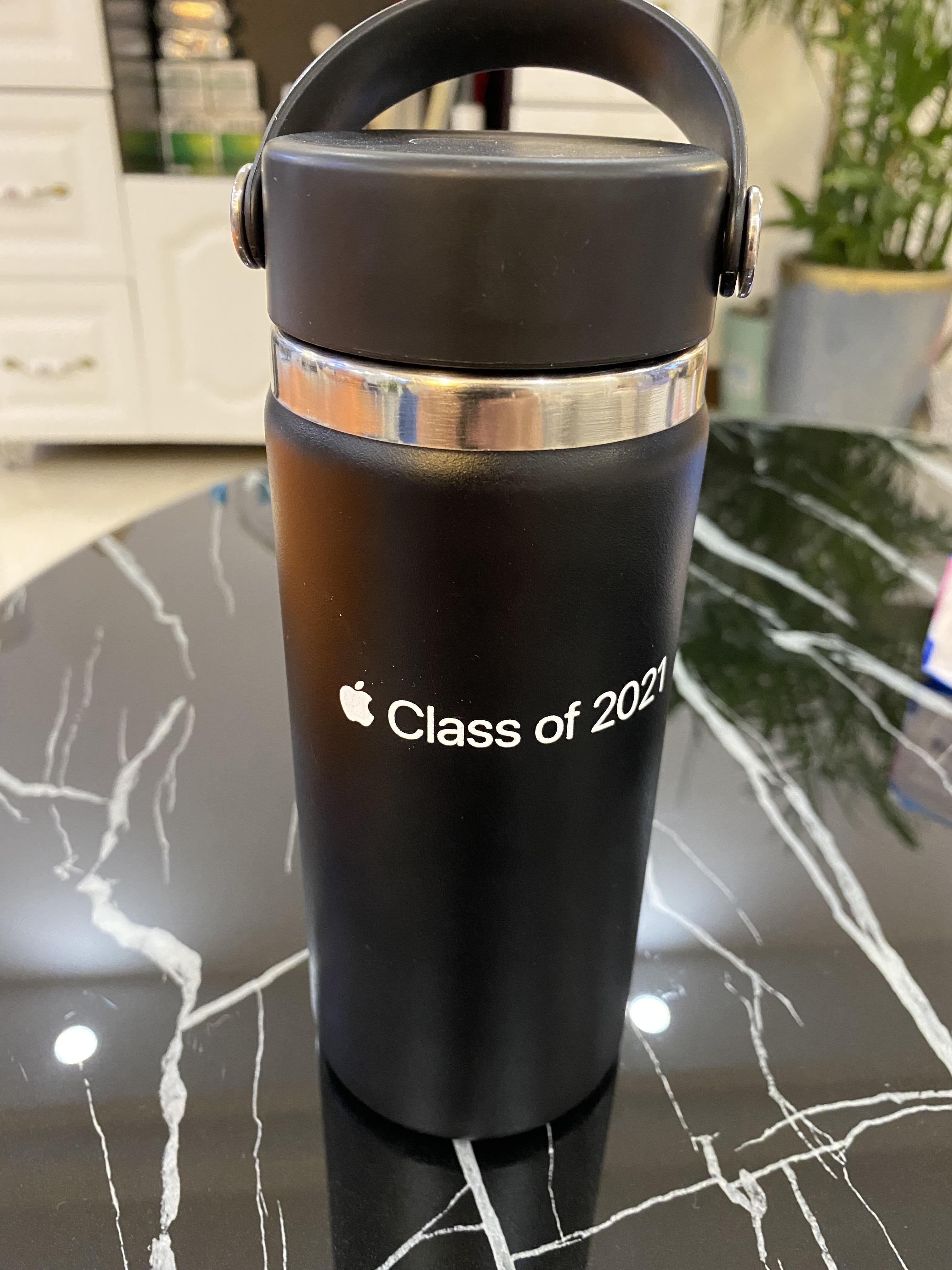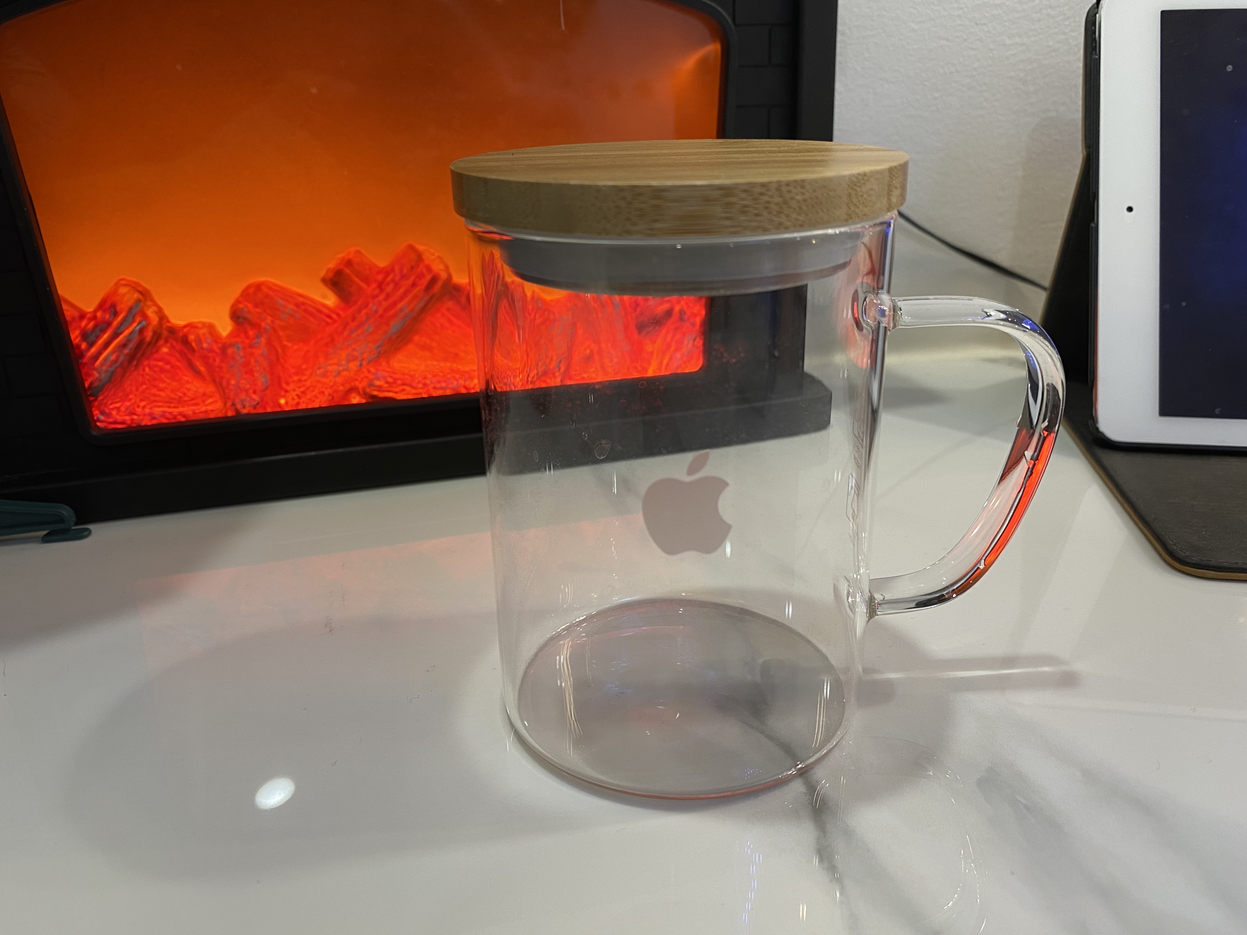 언제 받았는지 모르겠는 애플 유리컵과 보온병. 유리컵은 와이프가 자기 회사로 가져가서 사용 중이고 보온병은 운전이나 업체 방문 시 커피를 만들어 넣어서 쓰고 있다.