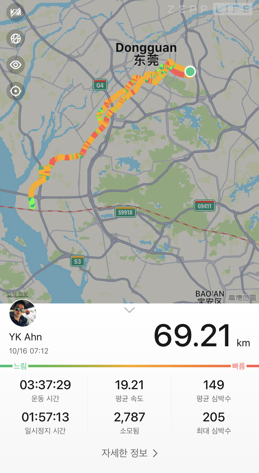 지난주 카카오 서버가 먹통이 되었던 시기에도 자전거를 타러 나갔었다. 지난번에 조금 멀리갔었던터라 이번에는 무리하지 않고 피곤하지 않을 정도인 69km. 원래 쓰던 스트라바 앱도 중간에 꺼지는 바람에 샤오미 시계에 연동되는 앱만 저장이 되었다.