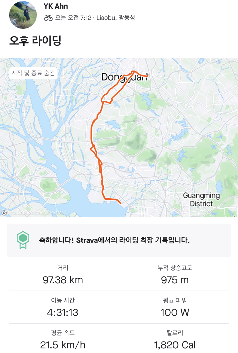 날씨가 선선해져서 자전거 타기 매우 좋은 날씨였다. 목적지는 동관에서 유일하게 바다를 볼 수 있는 하이빈완(海滨湾). 지난번에는 차를 타고 갔던 곳인데, 자전거로도 갈 수 있겠다 싶었다가 오늘 가보게 되었다. 오래간만에 3명이서 타게 된 라이딩인데, 다들 생각보다 너무 힘들지 않게 탈 수 있었다. 아쉽게도 하이빈완 공원 안으로는 자전거 출입이 안되어서 제대로 보지는 못했는데 다음번에는 약간 남쪽으로 내려가 봐야 할 듯 하다.