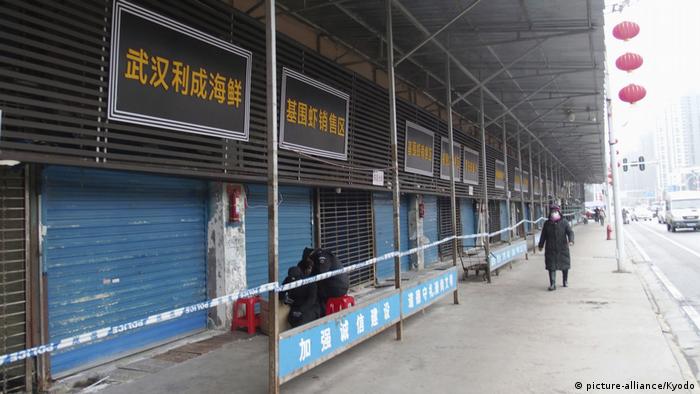 코로나 바이러스가 터진 직후와 임시 폐쇄된 시장의 입구. 지금은 간판조차 뜯어지고 없다.
