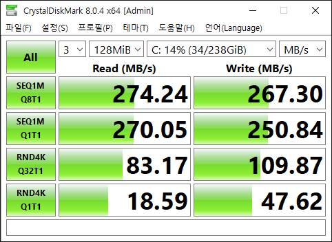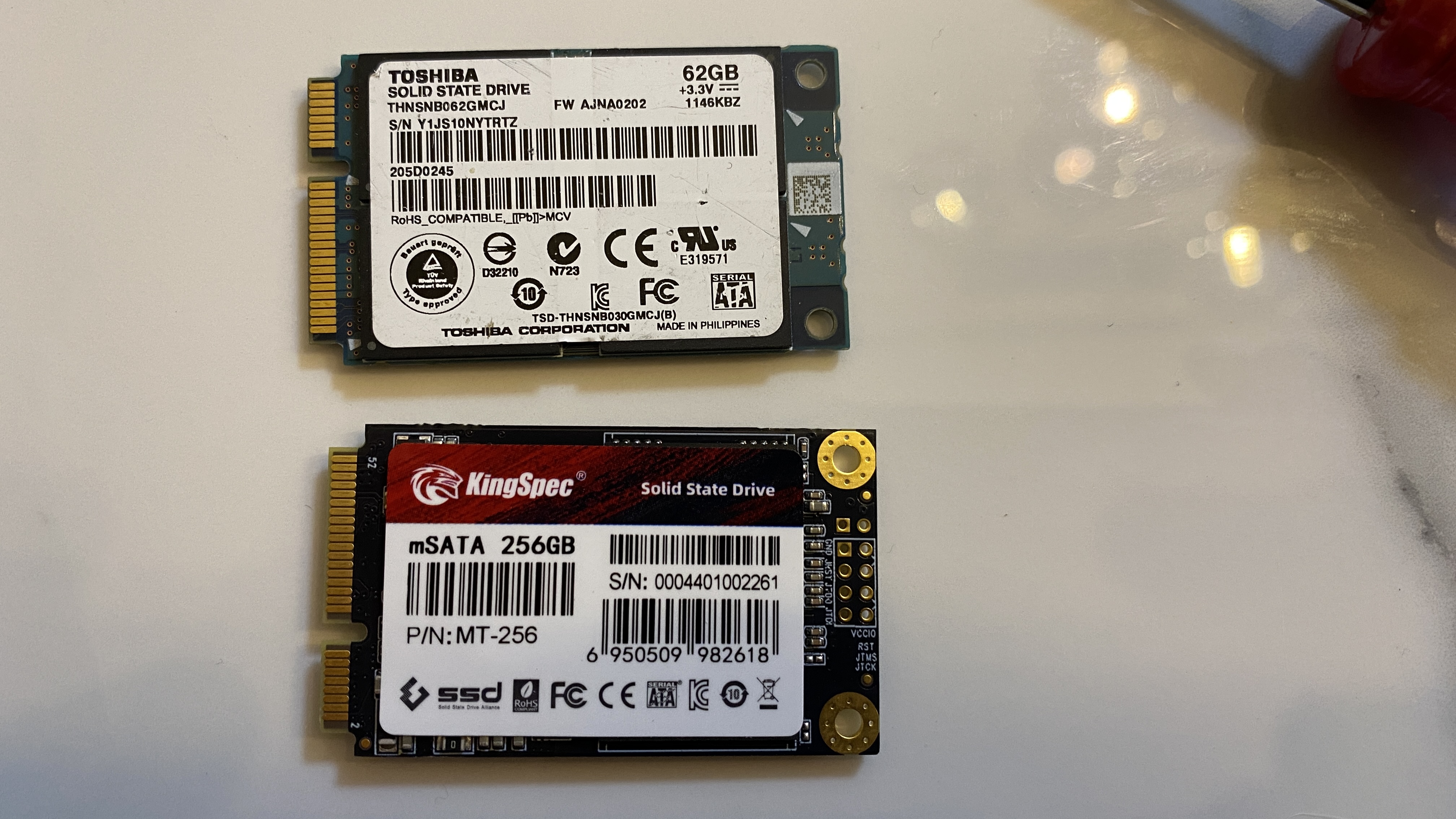 기존에 사용하던 도시바 62GB와 새로 산 256GB. 도시바 SSD도 2016년에 타오바오에서 구매했던 것인데, 그때 107위안을 주고 샀었다. 7년동안 플래시 메모리의 가격이 1/4로 줄어든 듯 하다.