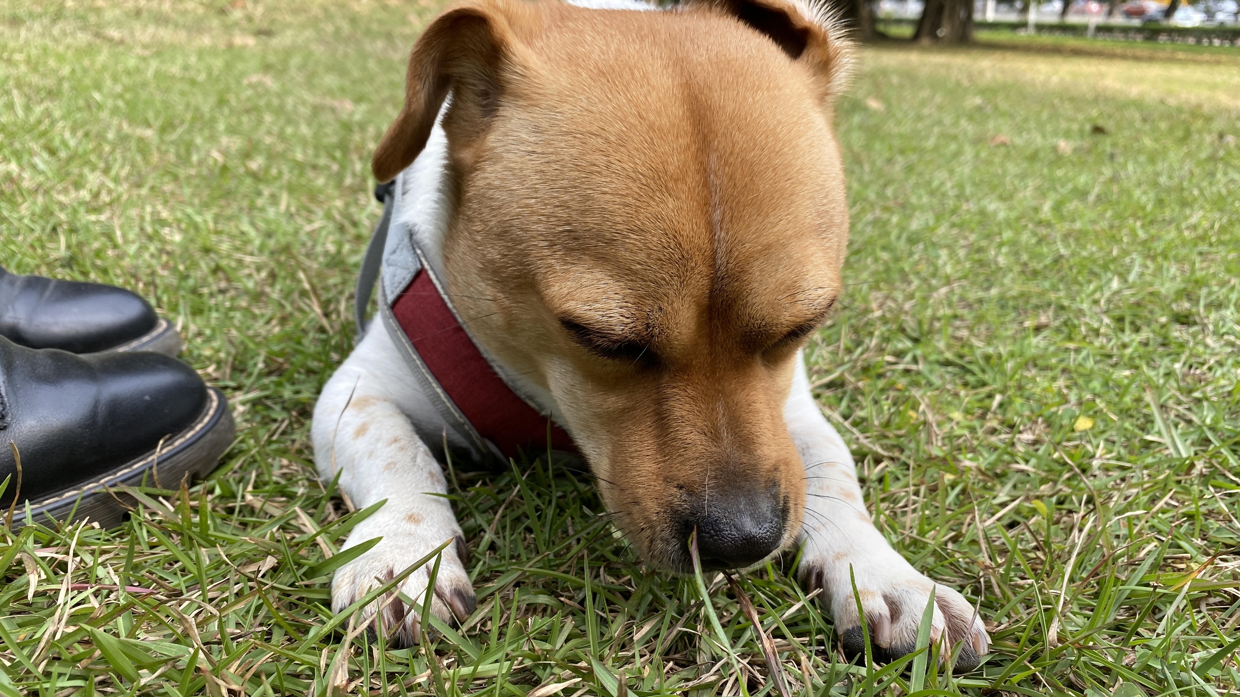 한참을 뛰놀다가 힘들어서 쉬고 있는 YY.