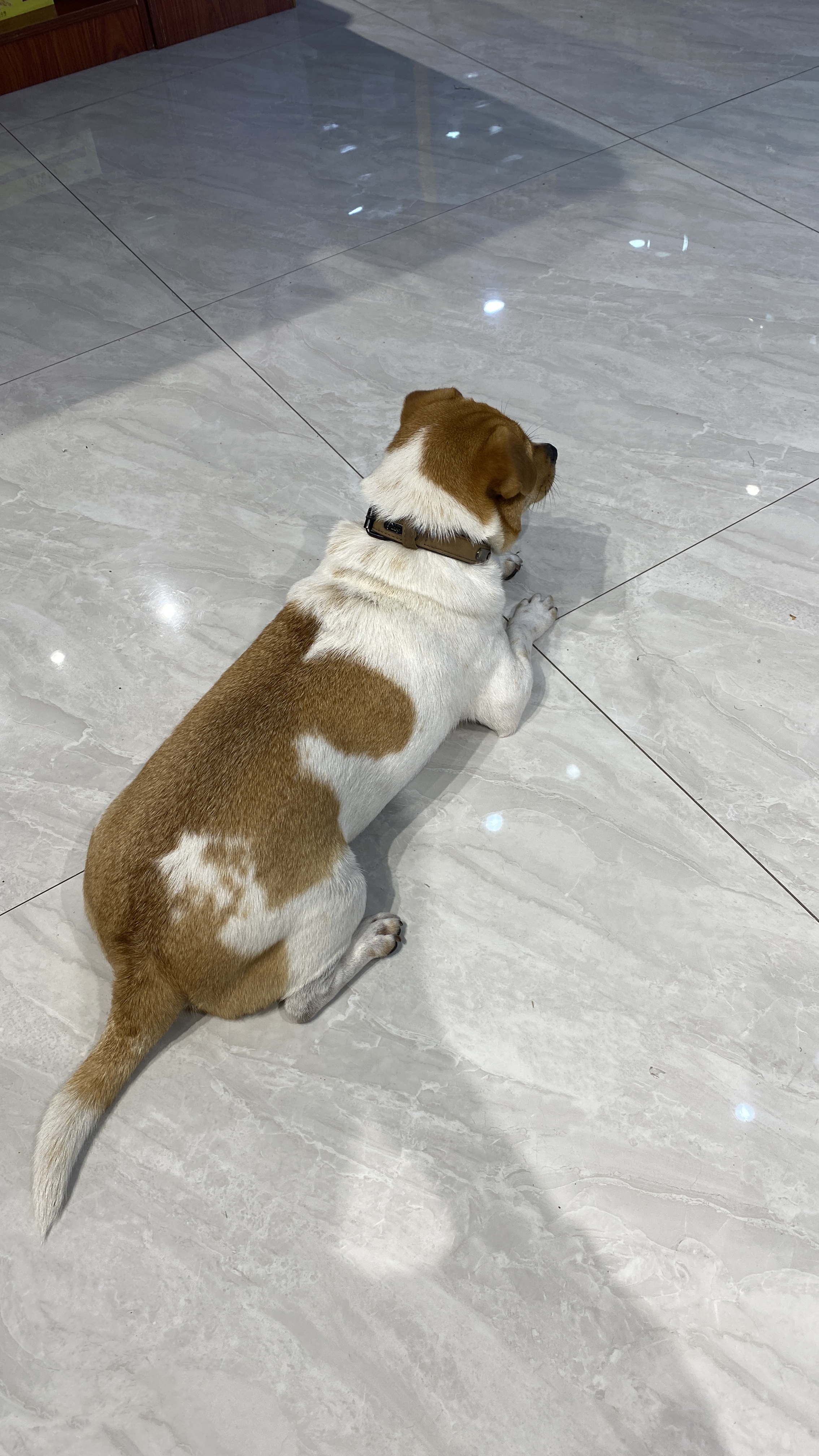 강아지가 커진데다가 살까지 쪄서 목걸이가 너무 작아보인다. 그래서 이후에는 강아지 몸통에 착용하는 벨트에 달아놓았다.