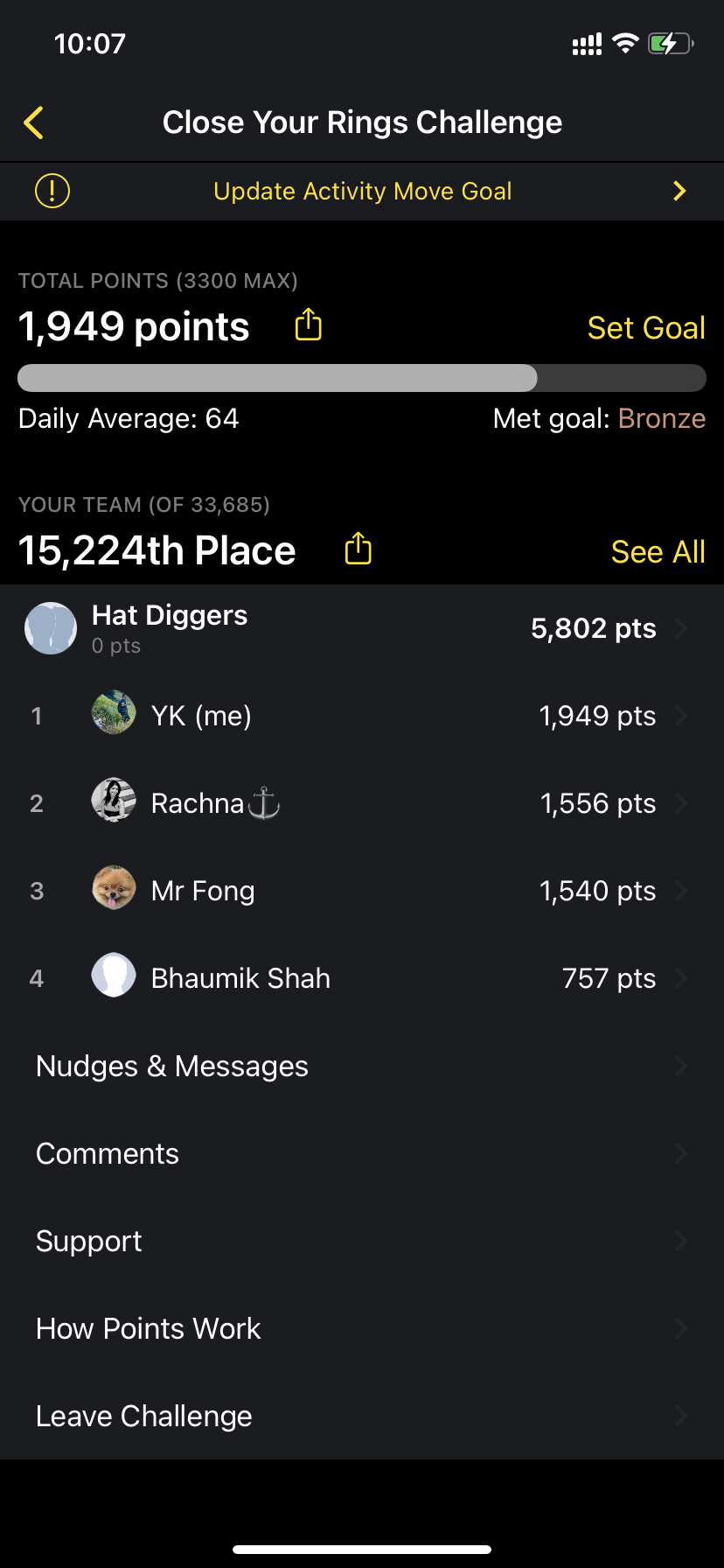 회사에서 가끔 건강과 관련된 도전 게임같은 것들을 한다. 특정 기간을 정해서 목표에 도달하면 회사 로고가 박힌 작은 선물도 준다. 이 챌린지 기간동안은 매일매일 목표에 얼마나 달성했는지 업데이트를 해줘야 하는데, 이번에는 아이폰이나 애플워치에 있는 기본 설정인 링 챌린지였다. 하루에 얼마나 움직이고 얼마나 운동하며 몇시간동안 서 있는지에 대한 것으로 애플직원이라면 누구나 참석할 수 있었다. 금은동으로 세개의 목표가 있는데, 어느것을 이루어도 상품은 같다. 그렇게 어려운 목표는 아니기 때문에 상품도 어렵지 않게 받을 수 있다.
