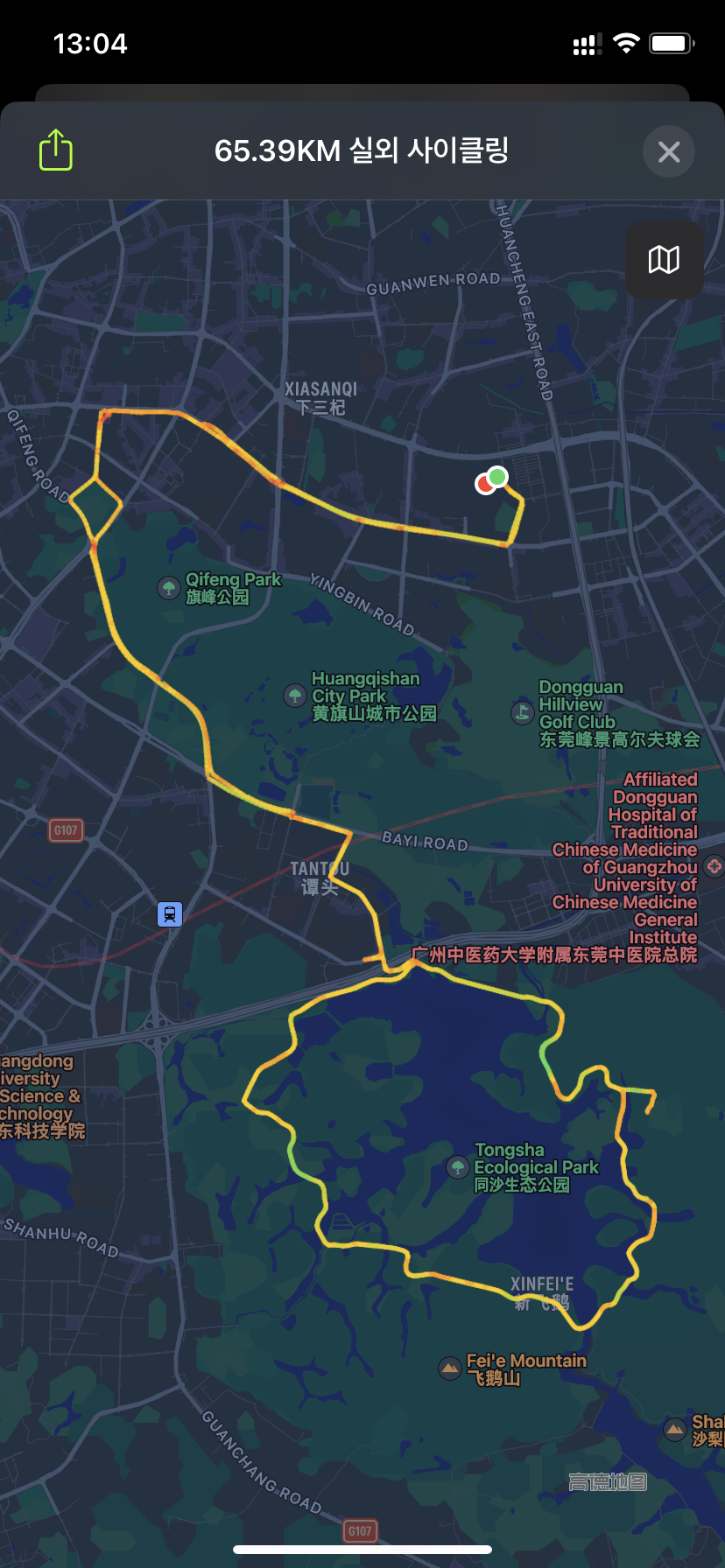 한 주 거르고 다시 재개한 자전거 타기. 아침부터 부슬비가 오락가락하여 탈지말지 고민하다가 평소보다 늦게 출발하였다. 악천후에 대비해서 멀리가지 않고 근처 통샤 생태공원에서 탔는데 2바퀴를 끝낼때쯤 비가 내리기 시작하였다. 약간 비를 맞으면 한바퀴 더 돌고 귀가.