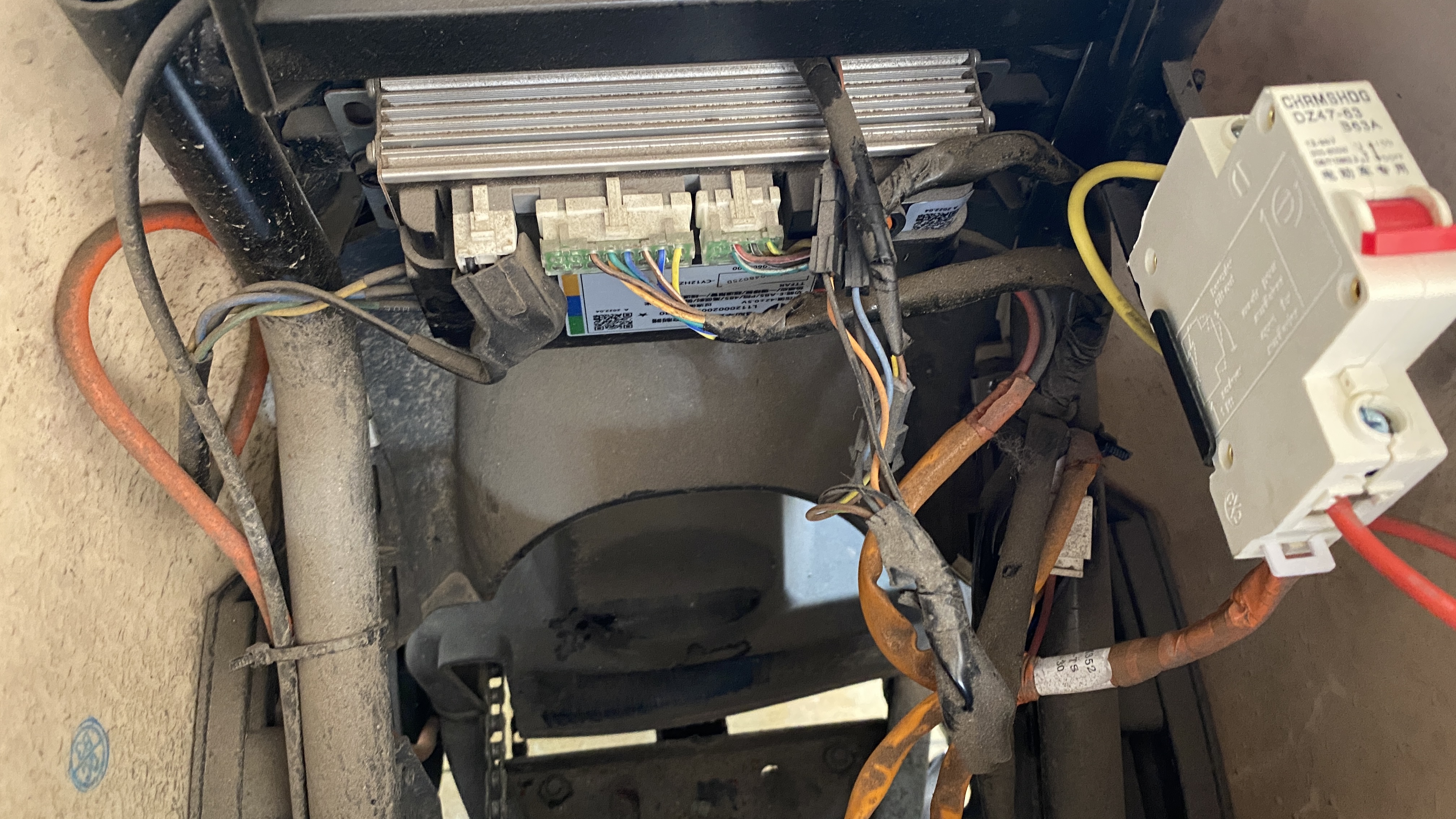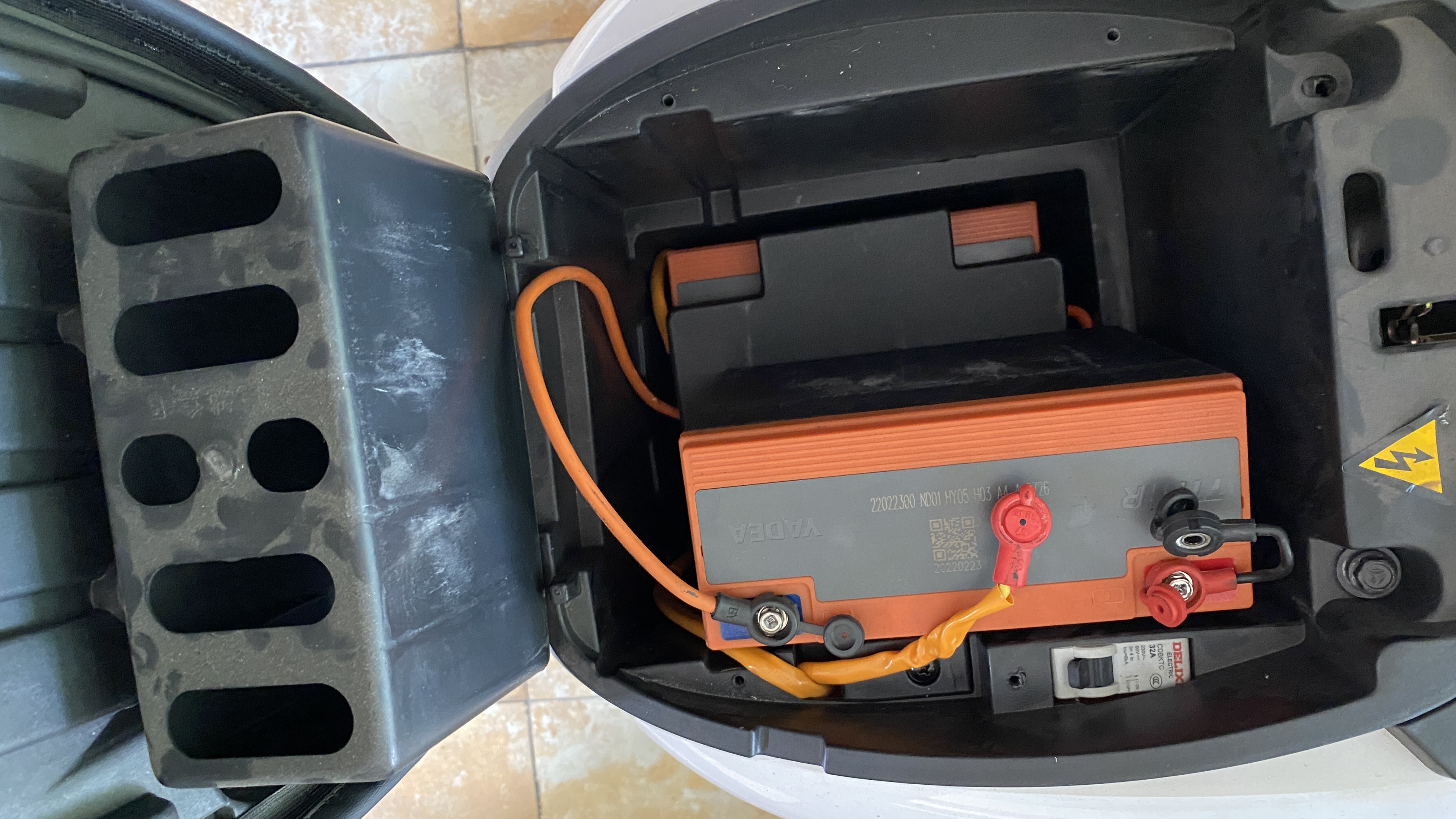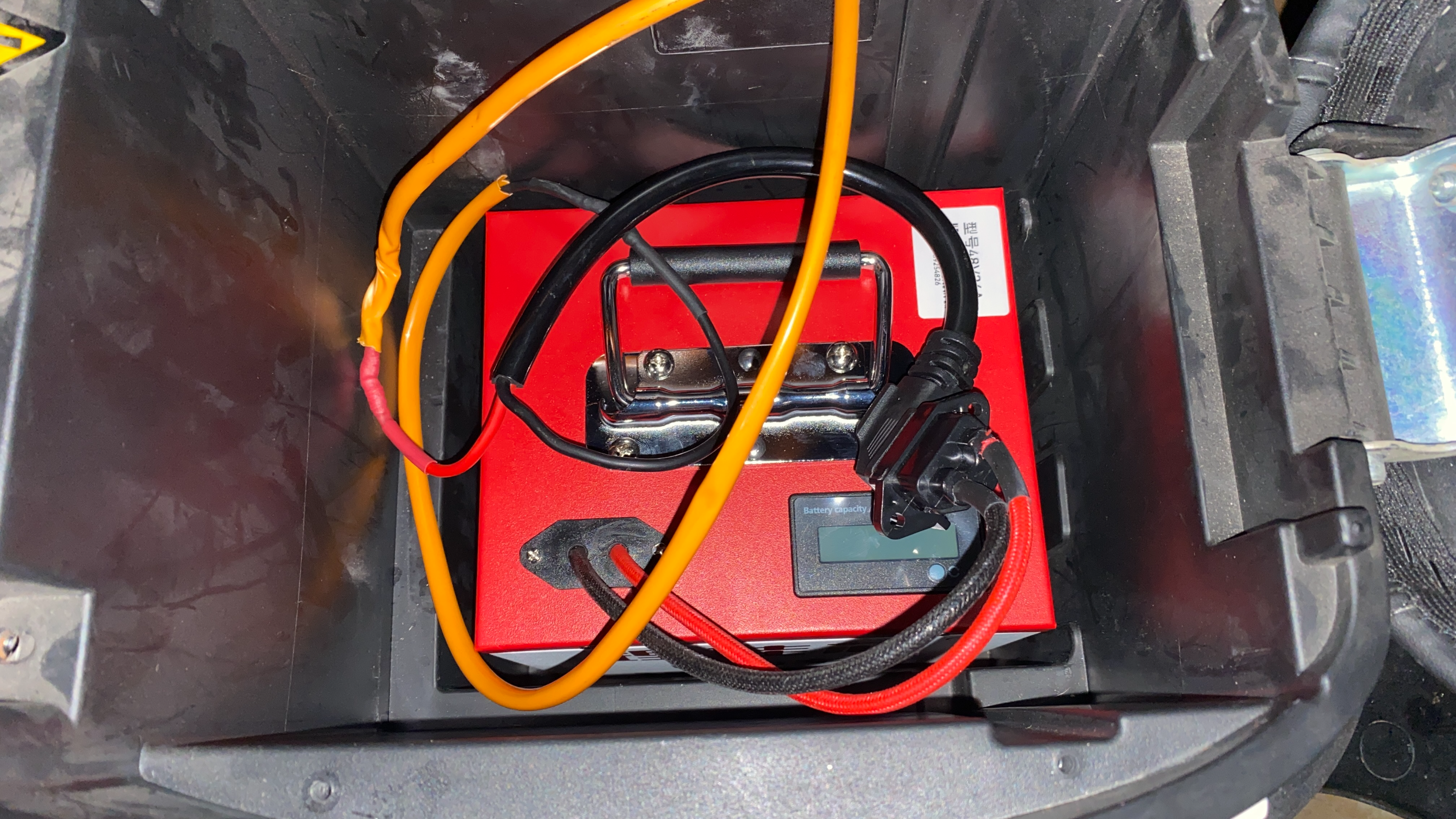 초간단 전선 연결작업 끝. 기존 배터리 공간에 더 큰 용량의 배터리가 들어가도 공간이 많이 남는다.