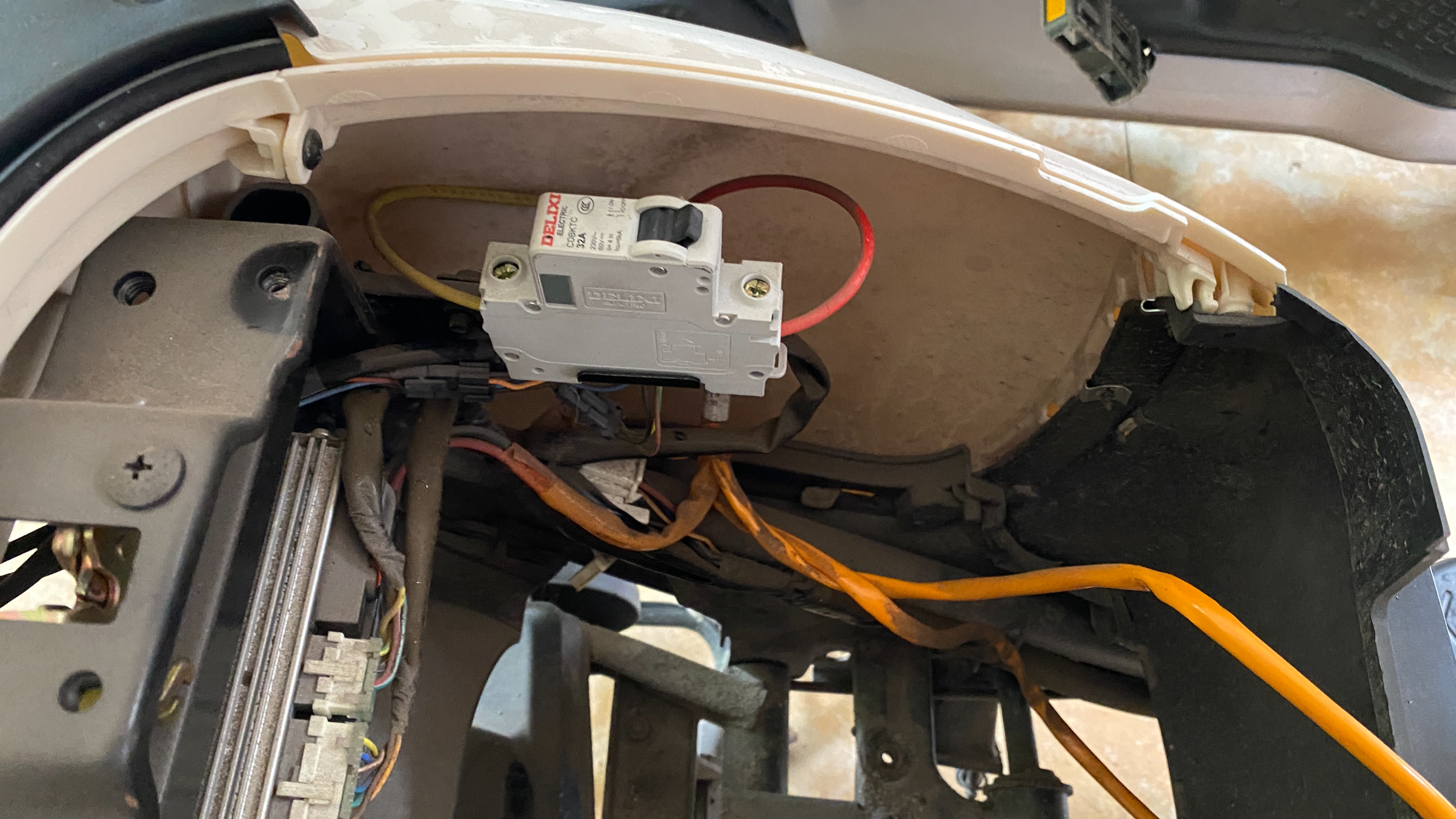 초간단 전선 연결작업 끝. 기존 배터리 공간에 더 큰 용량의 배터리가 들어가도 공간이 많이 남는다.