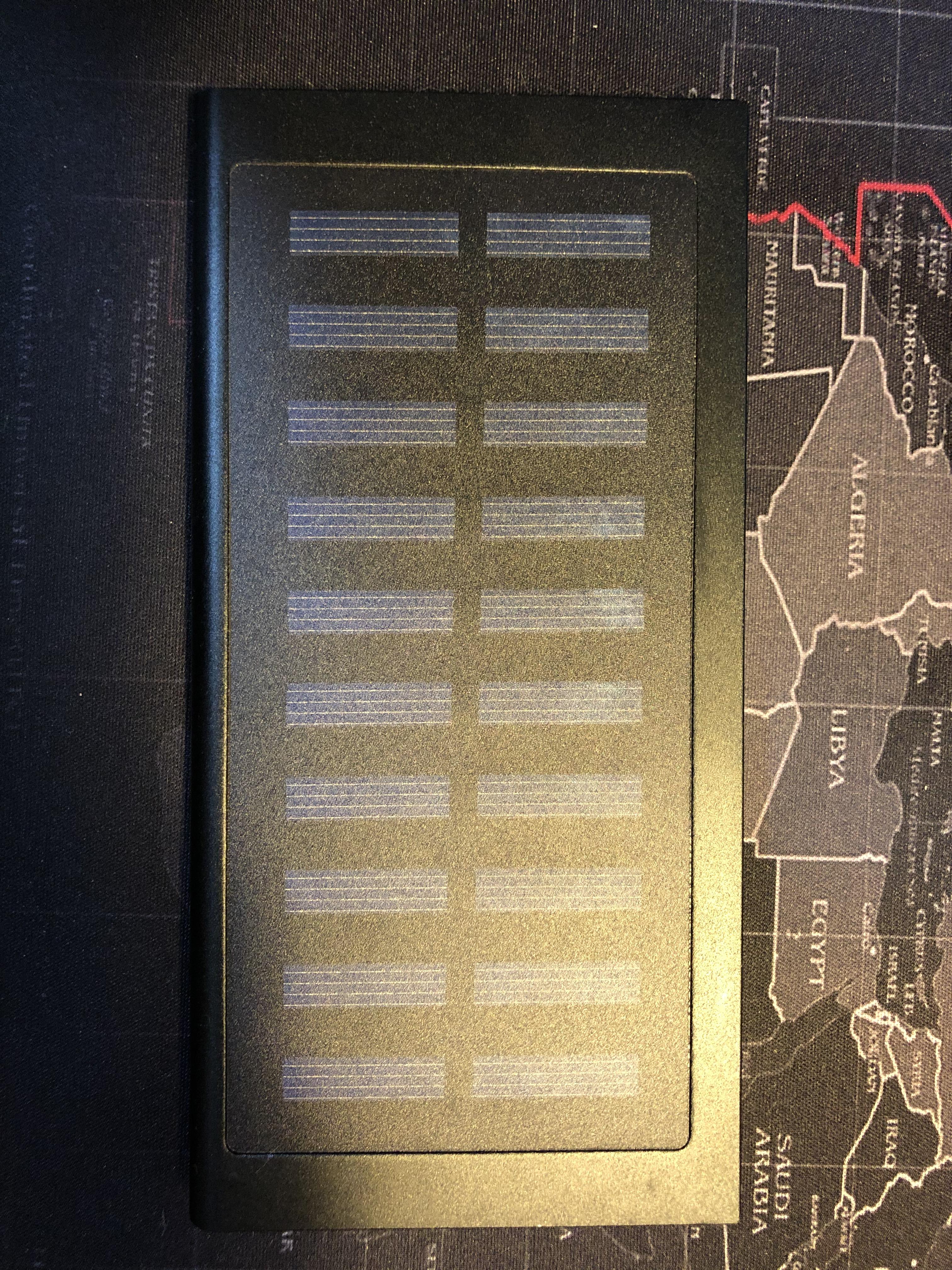두께가 얇고 크기는 아이폰X보다 약간 크다. 출력단자는 1A와 2.1A단자 두개가 있으며, micro USB로 태양전지가 아닌 일반 5V 직류로 충전할 수 있다. 중간에 매우 작은 LED 가 달려있는데, 보통 태양전지 충전지가 캠핑이나 여행자를 타겟으로 하기 때문에 이들의 편의를 위한 것인 듯 하다.