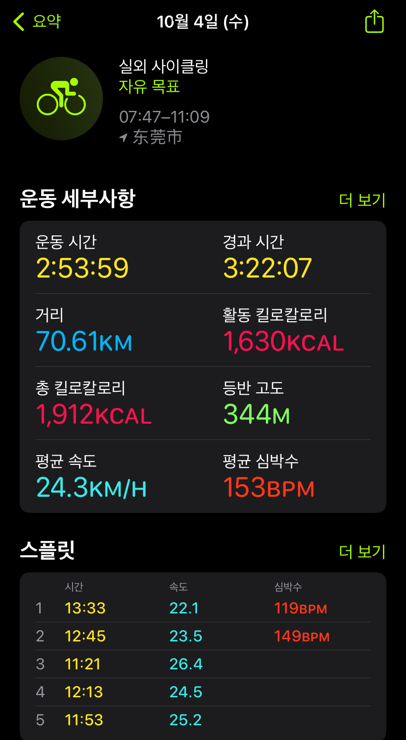 | 중국 국경절 휴일 자전거 라이딩, 101km (0) | 2023.10.01 |