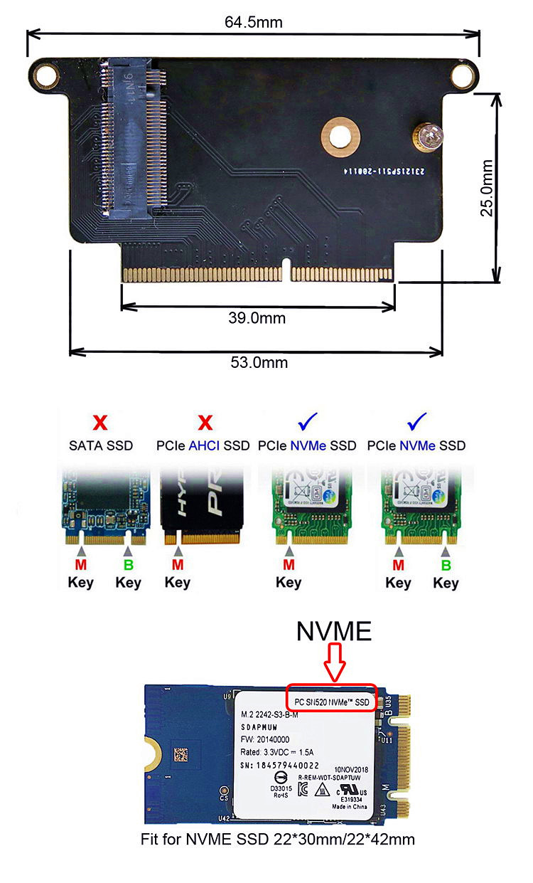 사진에서 왼쪽이 어댑터이고, 오른족이 SSD. 구글에서 찾아보니 SN520이 맥북프로와 호환성이나 속도, 발열에서 좋다고 해서 결정한 것인데, 어댑터는 중국돈으로 25위안(4,500원), SSD는 371위안(7만원)으로 총합 대략 7만5천원정도이다.