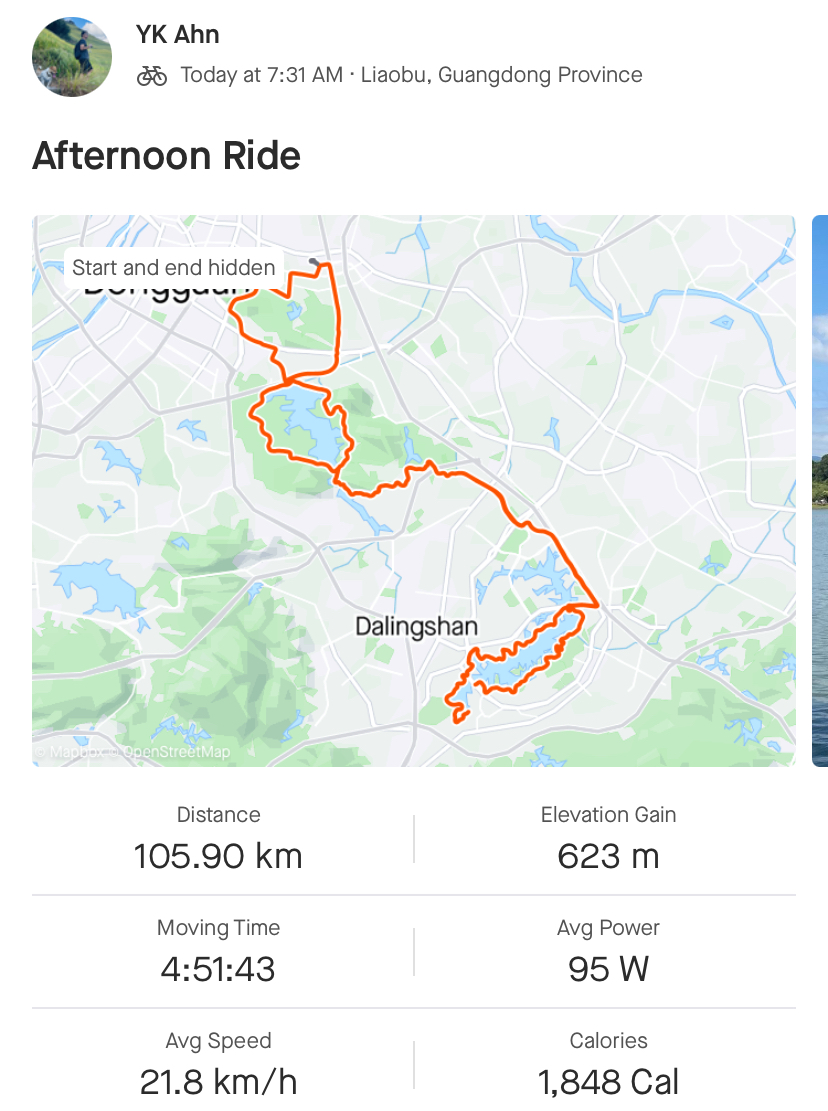 광동 남부 지방에 날씨 좋은 가을이 와서 송샨후(松山湖, 송산호)가 유원지처럼 사람이 많아서 자전거 타기는 더 힘들었다.