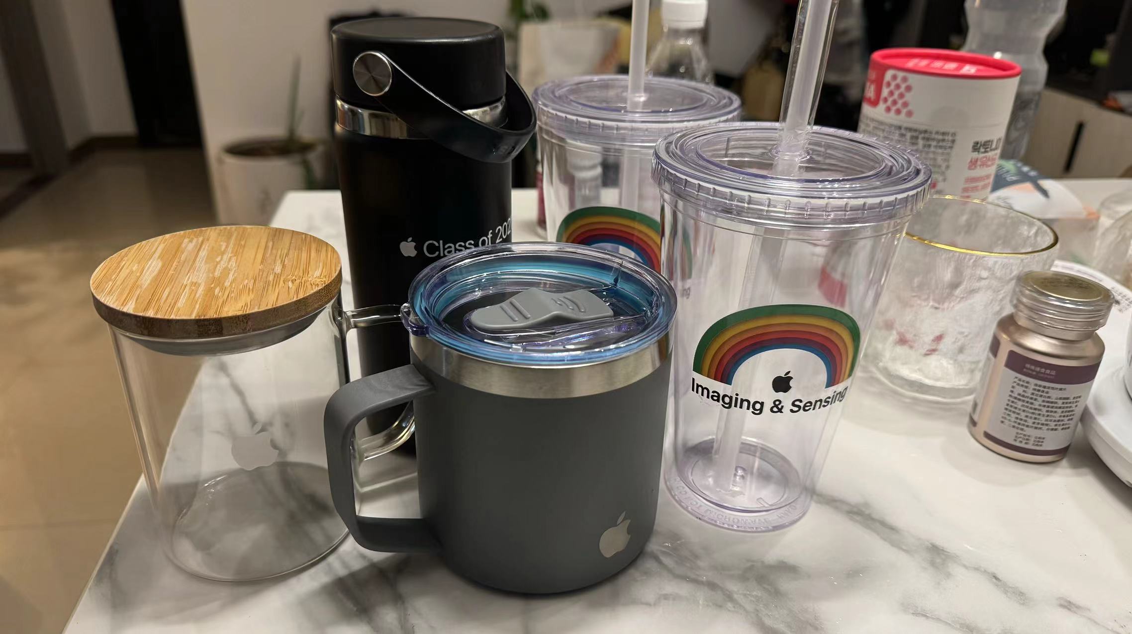특이하게 회사에서 자꾸 컵을 준다. 입사시 받은 보온병, 기억나지 않는 이유로 준 플라스틱 컵, 사내 챌린지 성공 후 준 유리컵과 메탈컵 등, 이래저래 2년 반동안 받은 컵만 5개이다. 컵 외에도 티셔츠나 후드티도 종종 보내는데, 이것들도 모아서 사진을 한번 찍어봐야겠다.