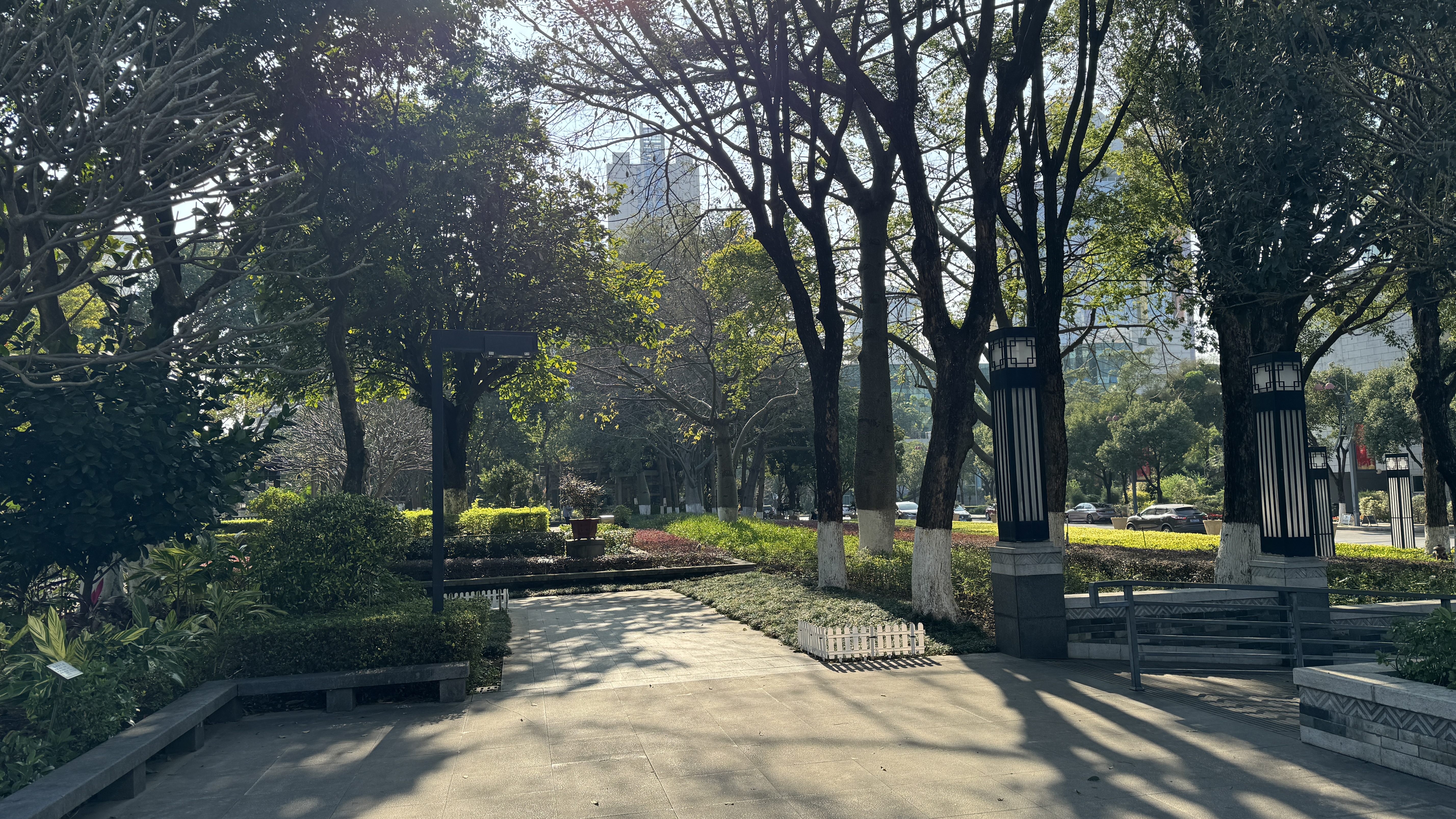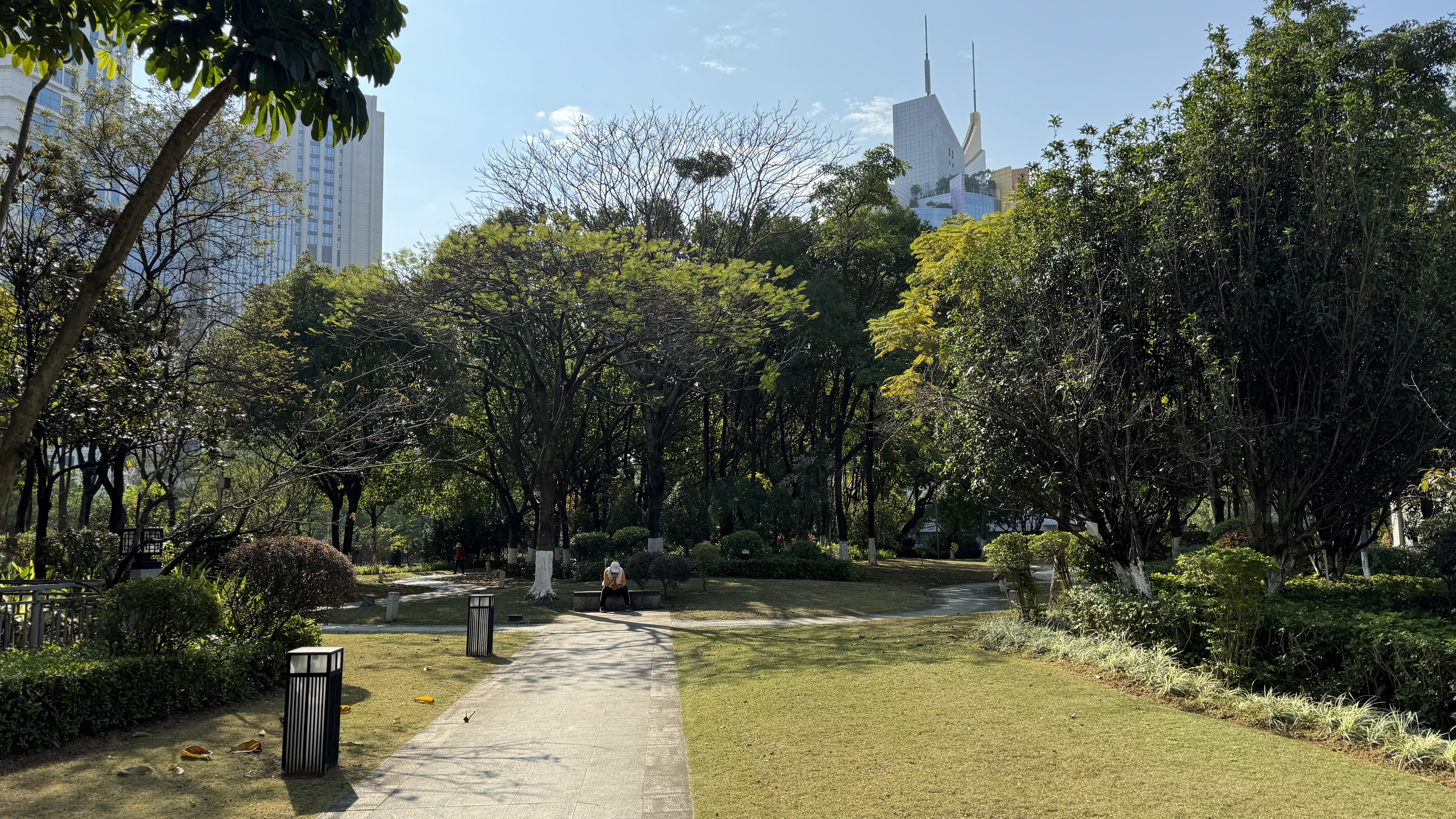 동관 동청 정부기관 건물 뒤에 있는 이름 모를 공원에서 YY와의 산책.