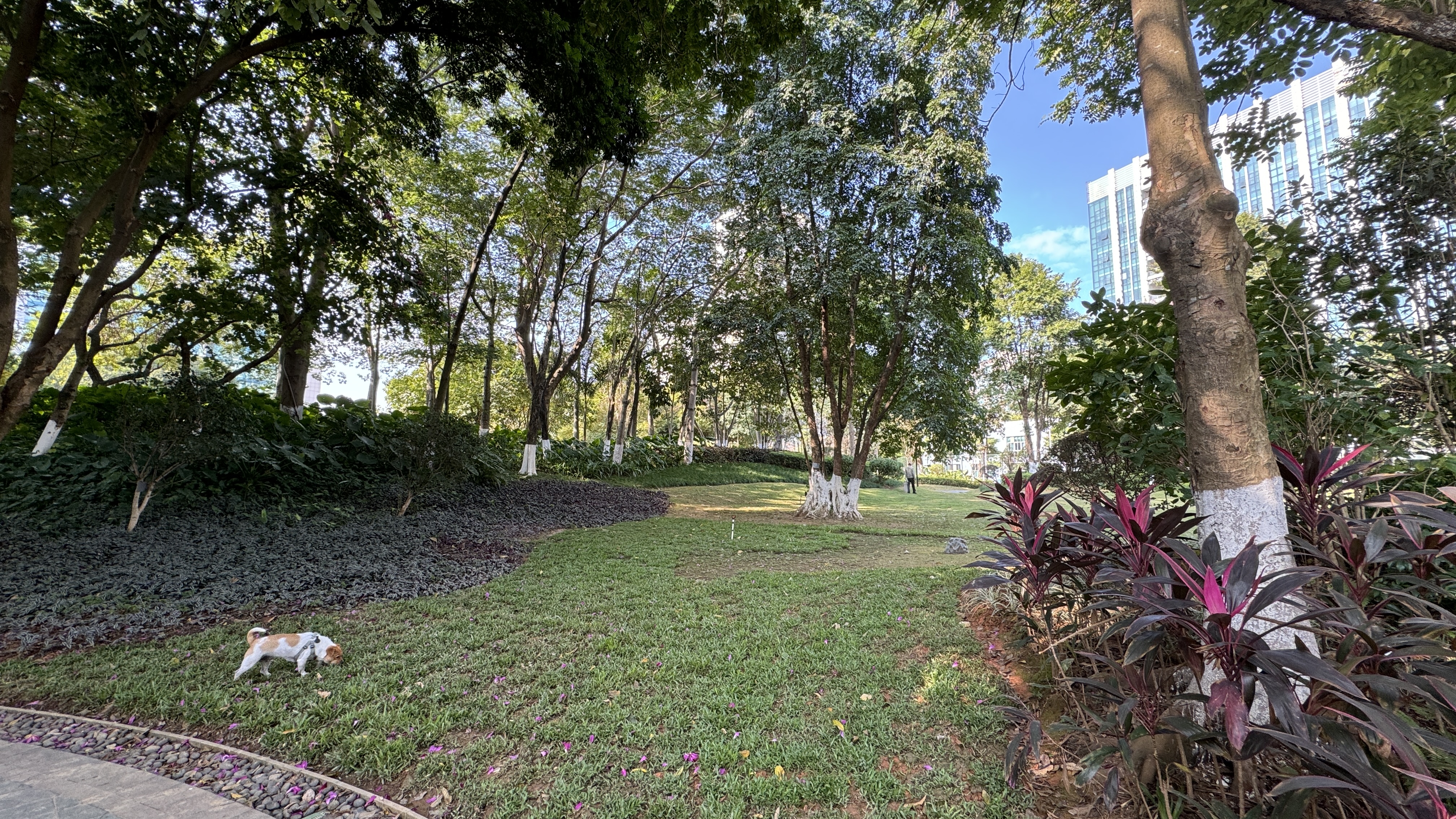 동관 동청 정부기관 건물 뒤에 있는 이름 모를 공원에서 YY와의 산책.
