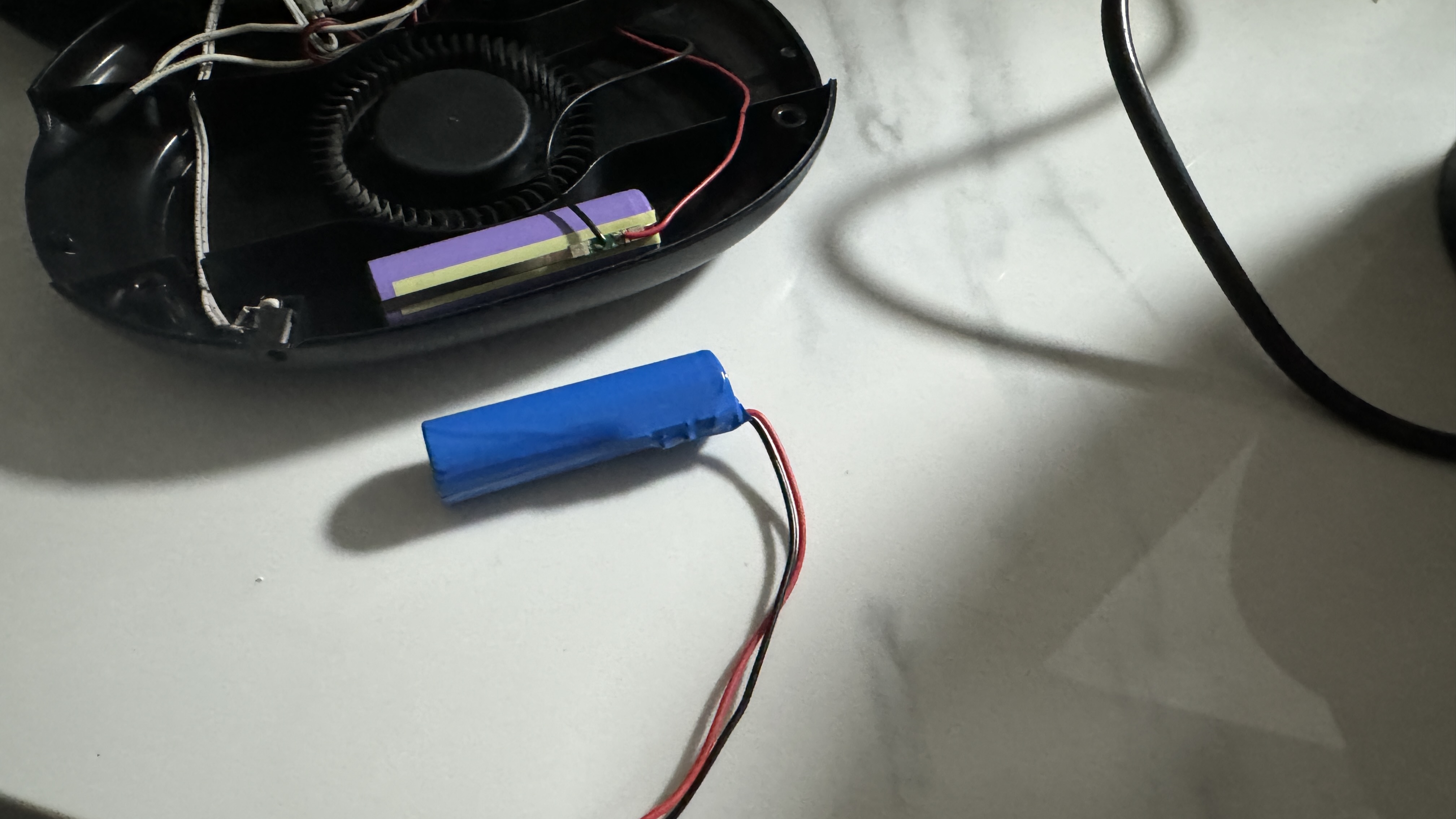 기존 충전지를 제거하고 전선 연결 작업 후 재조립하니, USB 전류입력이 없어도 잘 작동한다.