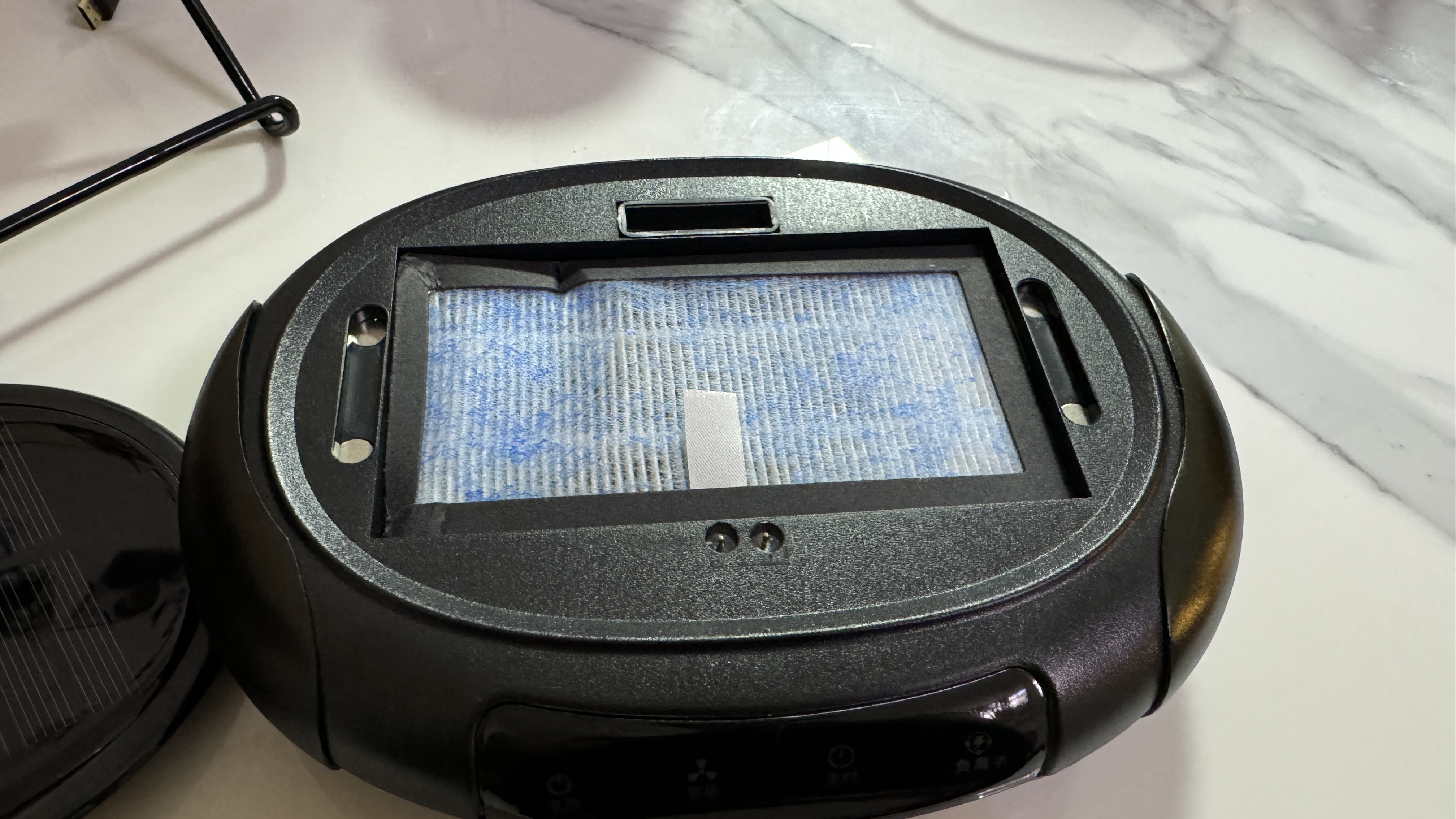 태양전지판을 들어내면 안에는 필터가 있고, 필터를 꺼내면 팬이 있다.