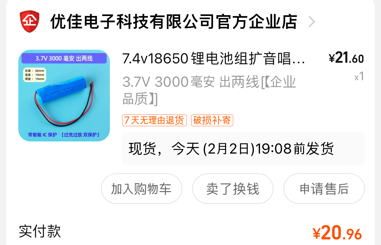 충전지에 선이 연결되어 있어서, 껍질을 뜯어보니 양단자가 웰딩되어 있고 보드에 연결되어 전선으로 뽑혀 있었다. 이건 충전지를 사서 웰딩을 해야 하는건가...라고 고민하다가 타오바오에 찾아보니 이미 이렇게 작업된 충전지들을 팔고 있었다.