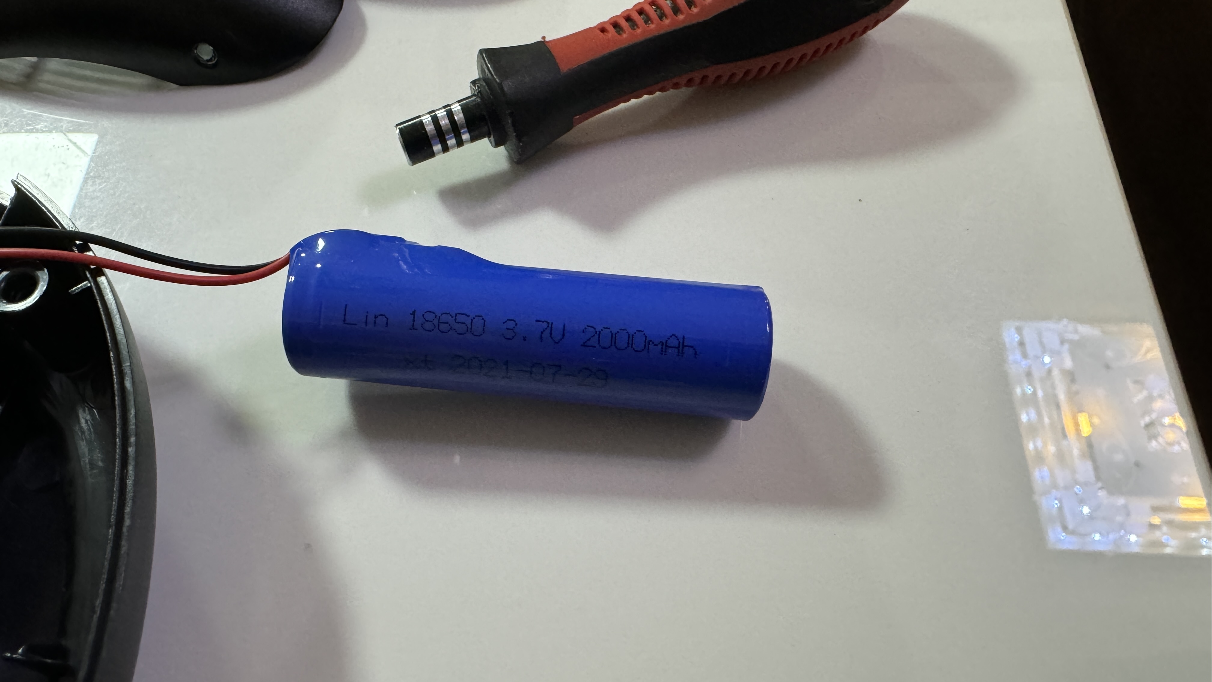 기존 충전지를 제거하고 전선 연결 작업 후 재조립하니, USB 전류입력이 없어도 잘 작동한다.