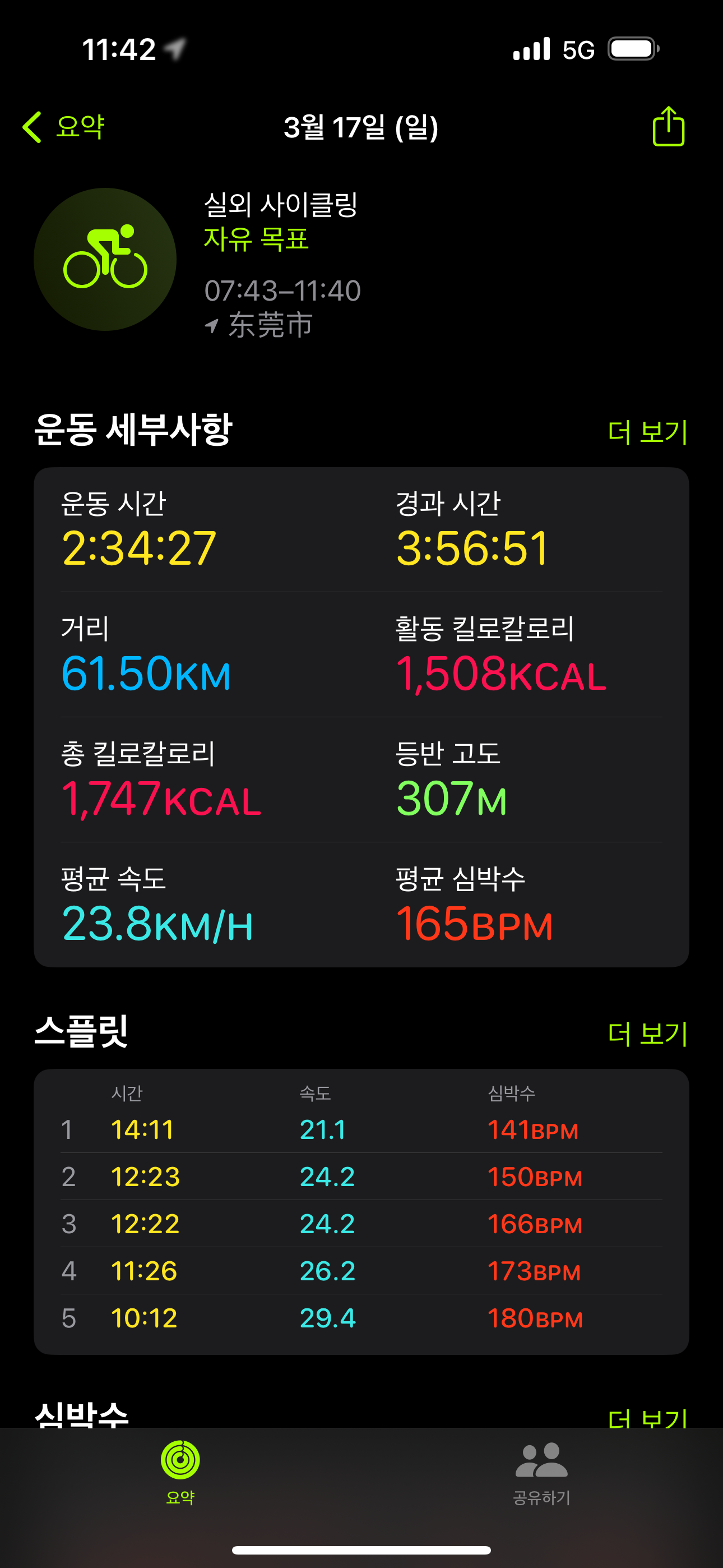 3주만에 다시 타는 자전거 라이딩. 아직 예전처럼 다시 탈 수 없을 것 같아서 근처에 있는 통사생태공원에서 3바퀴만 돌고 돌아왔다.