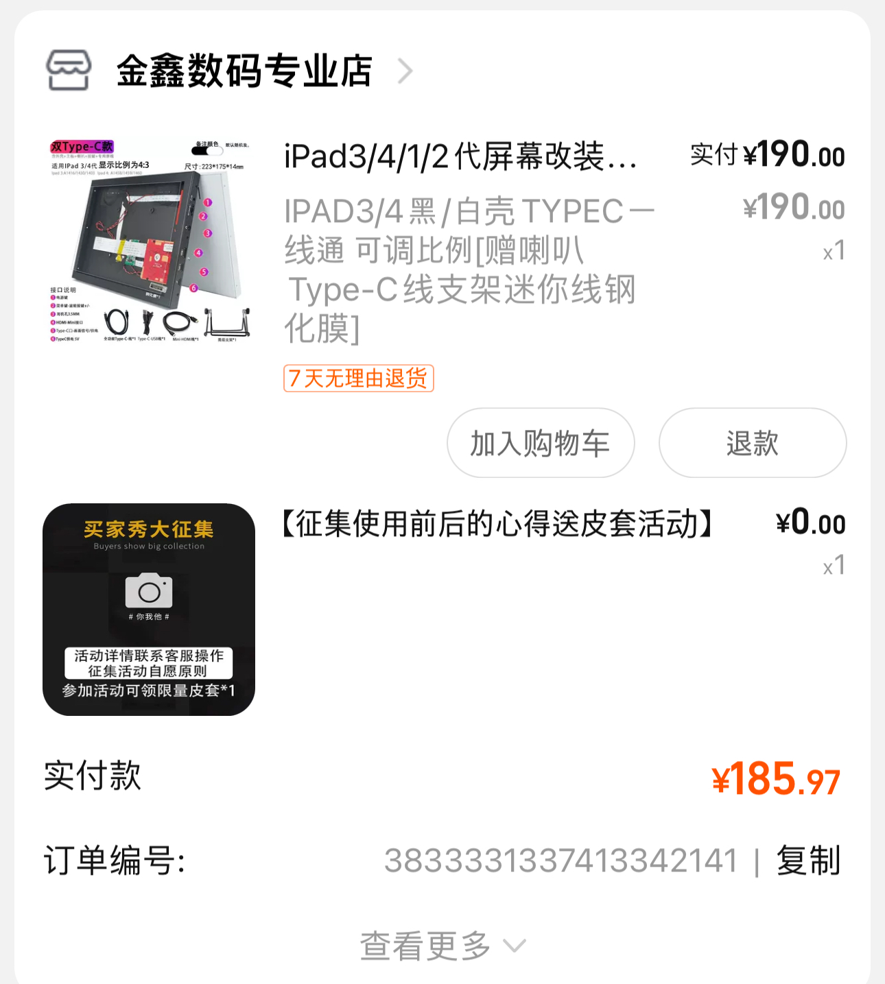 타오바오(淘宝)에 동일하거나 비슷한 kit을 파는 판매자가 많아서 그 중 한 판매자에게 구매하였다. HDMI와 type-C USB를 사용할 수 있는 방식이며 전원도 type-C USB 형태이다. 가격은 190위안으로 3만5천원정도이다.