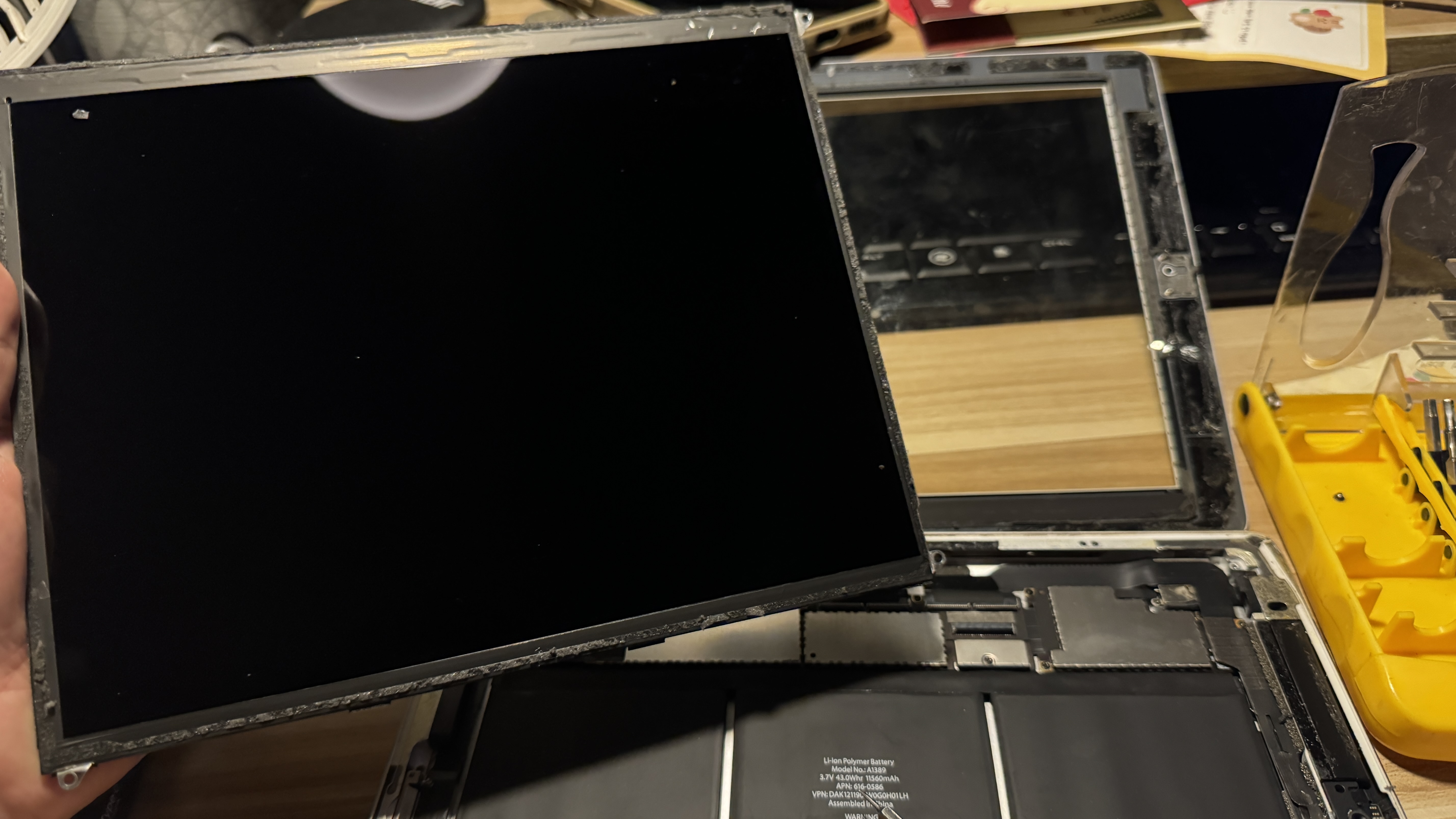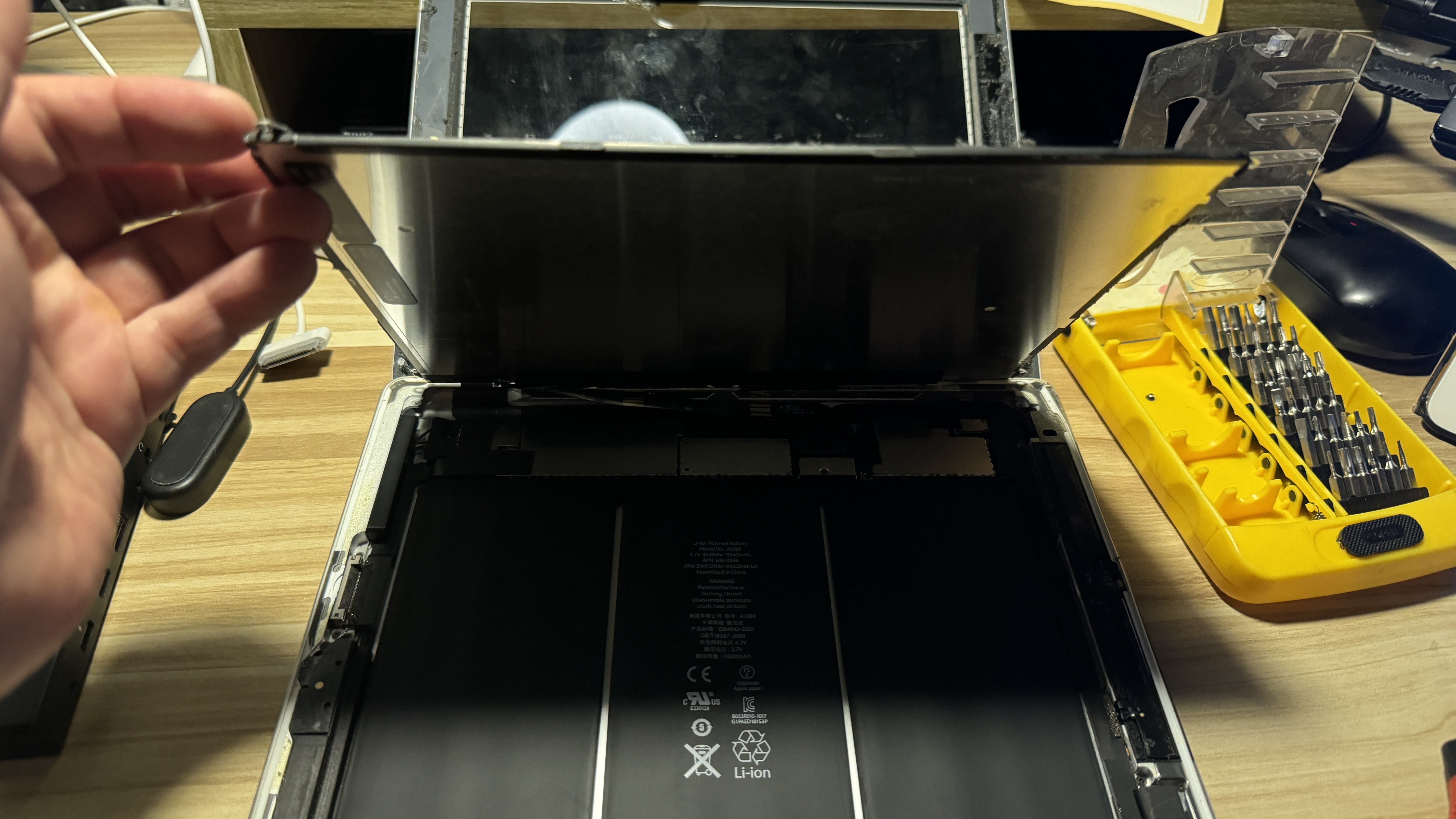 아이패드에서 디스플레이를 추출해내야 하기 때문에, 아이패드의 전면 터치스크린을 제거해야 한다. 열풍기나 hot plate에 올려서 터치스크린을 잡고 있는 PSA의 접착력을 떨어뜨려야 하는데, 당연히 이런 장비가 없기 때문에 헤어드라이어로 대체하였다.
