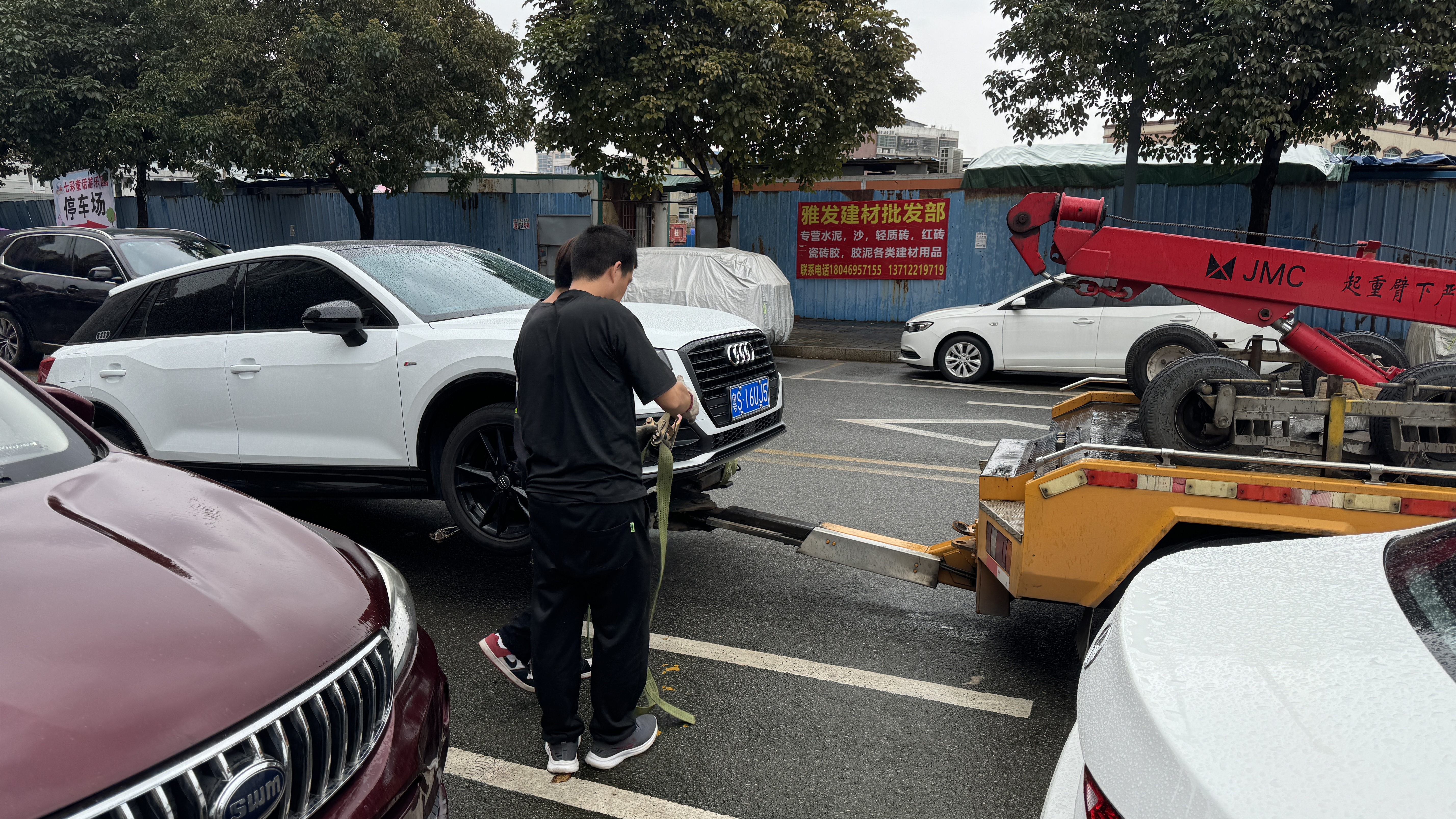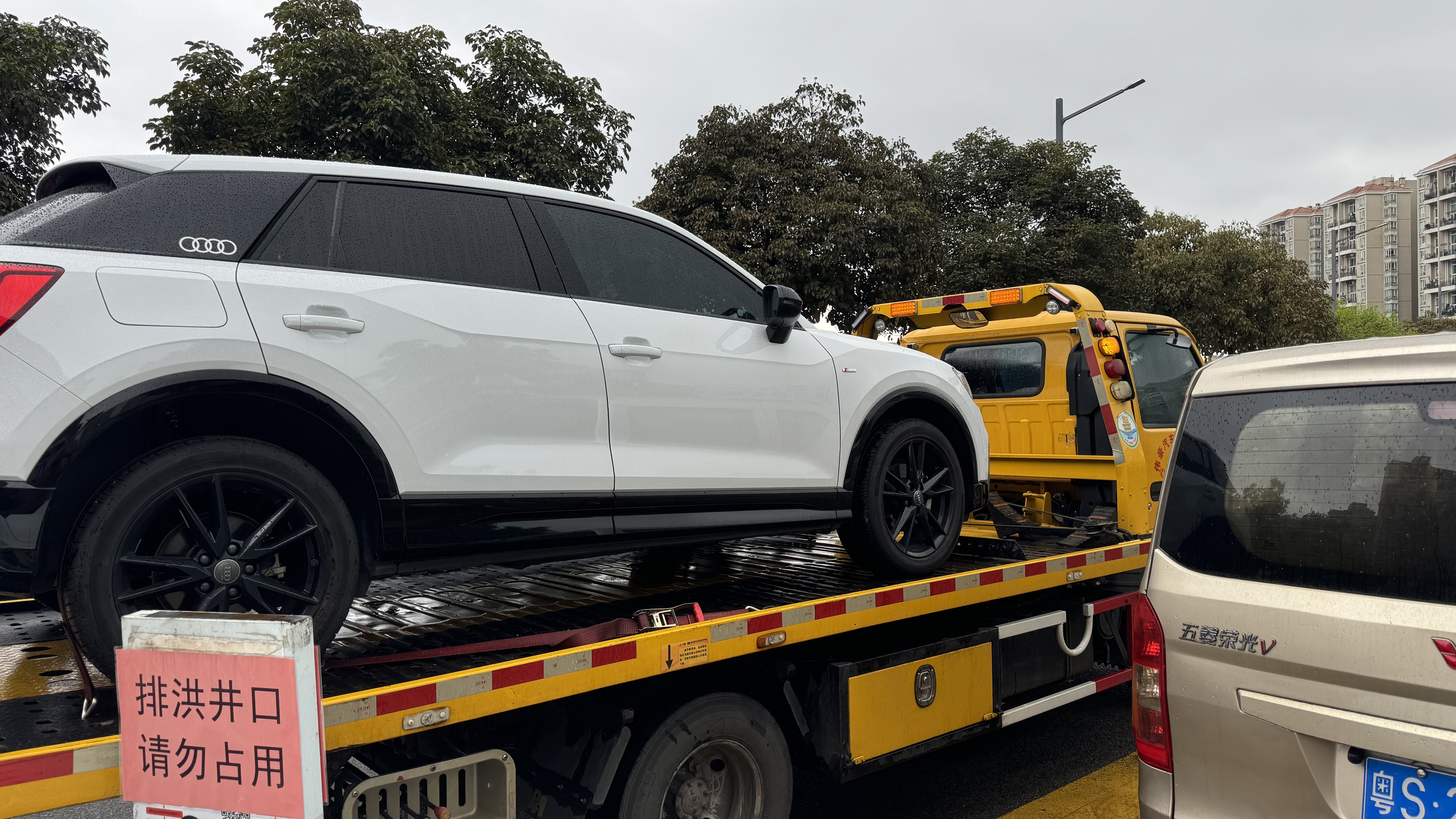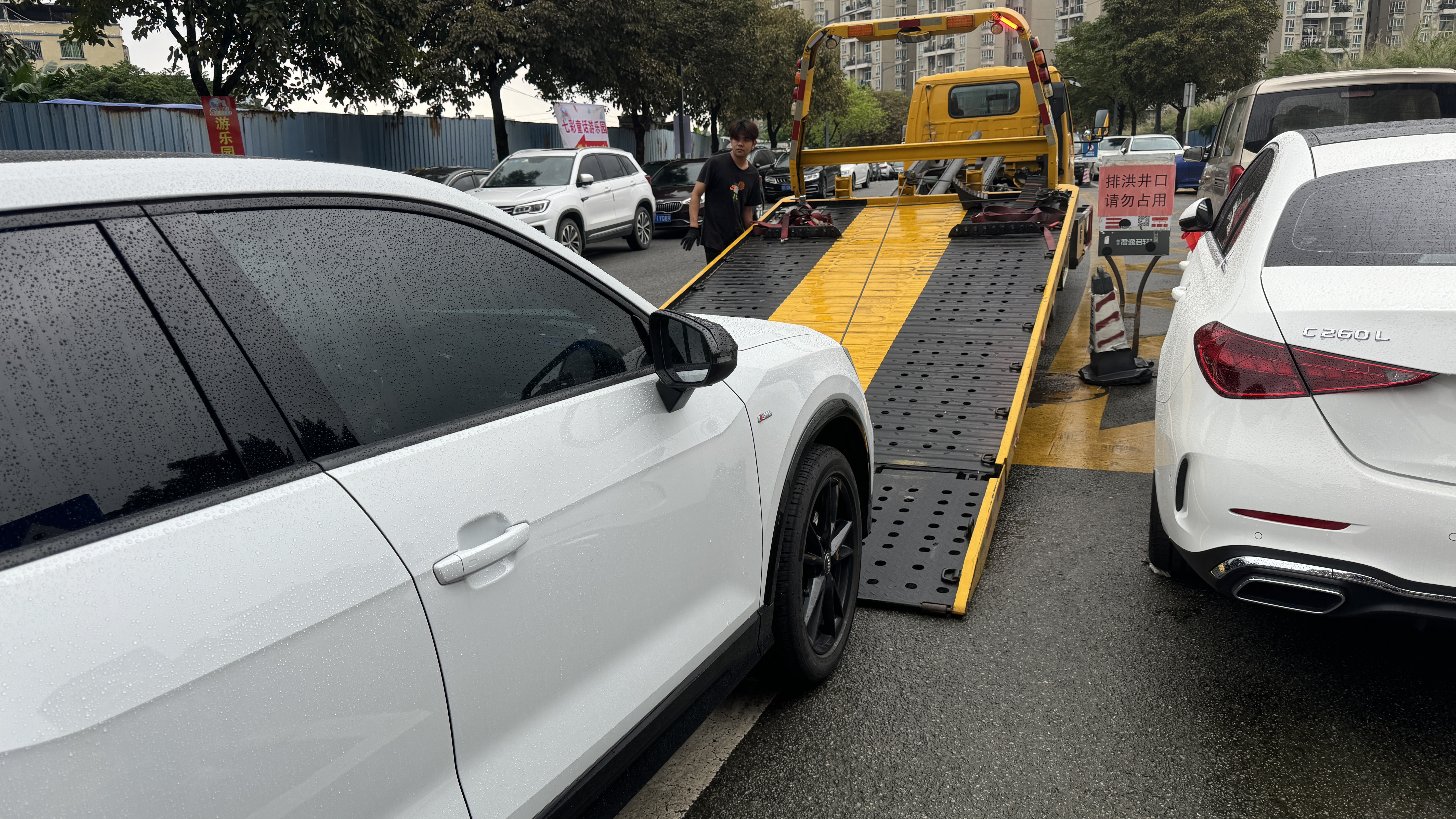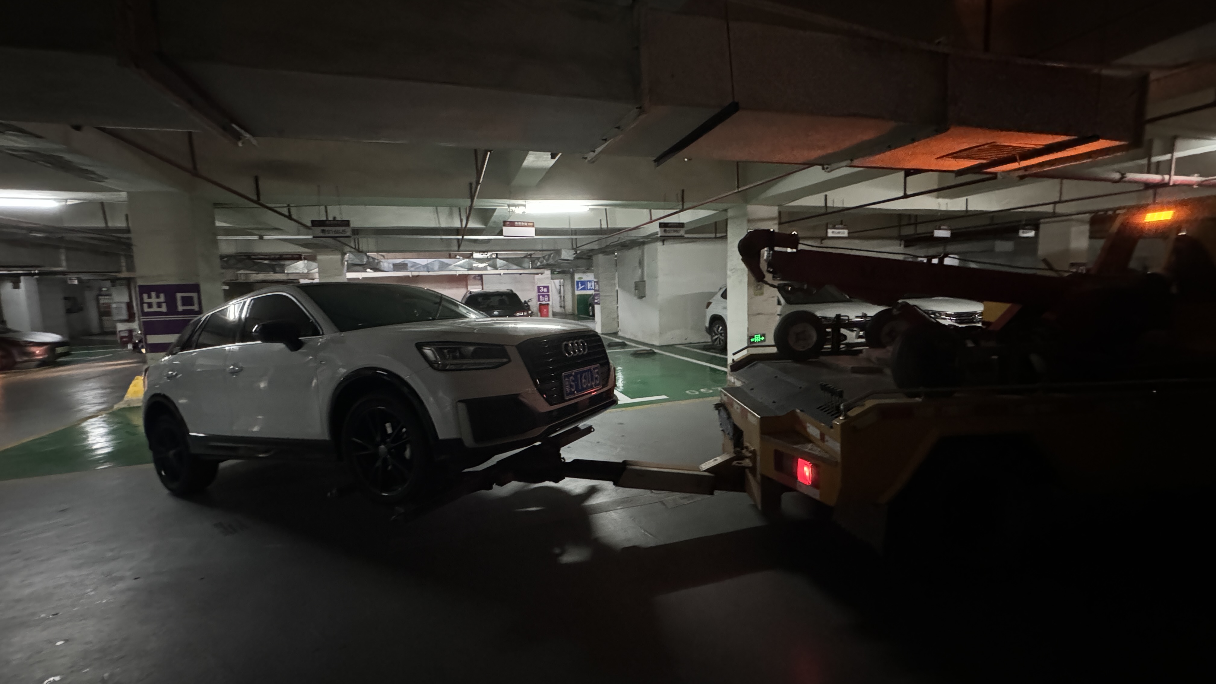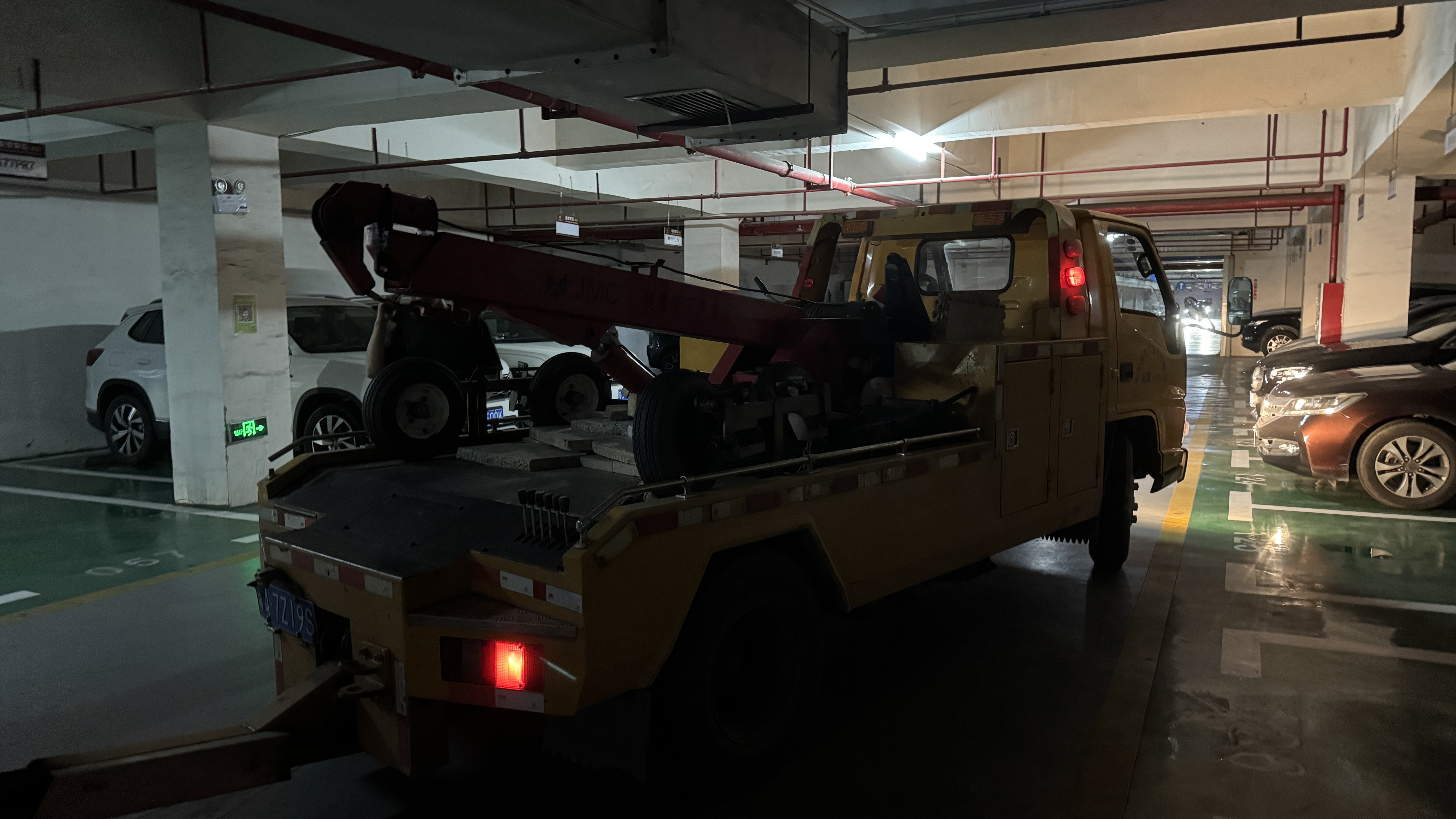 일반 견인차는 지하주차장 진입이 불가능하기 때문에 차고가 2미터가 안되는 견인차가 먼저 와서 차를 주차장 밖으로 빼어 주었다.