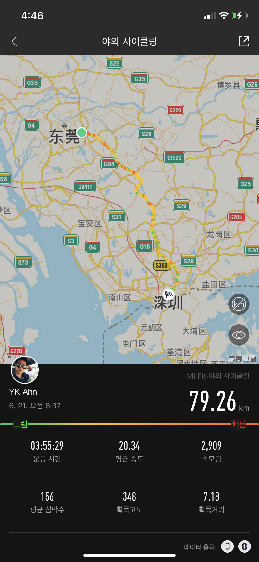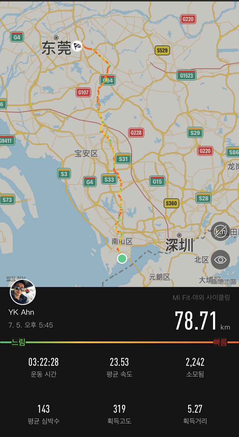 기록앱상에는 4시간이 안되게 나오지만 중간에 잠깐씩 쉬었던 시간을 합치면 대략 4시간 반정도 된다. 이때가 중국에서 갑자기 코로나가 다시 나오게 되었을 때라, 심천에 와서도 전혀 돌아다니지는 못했다.