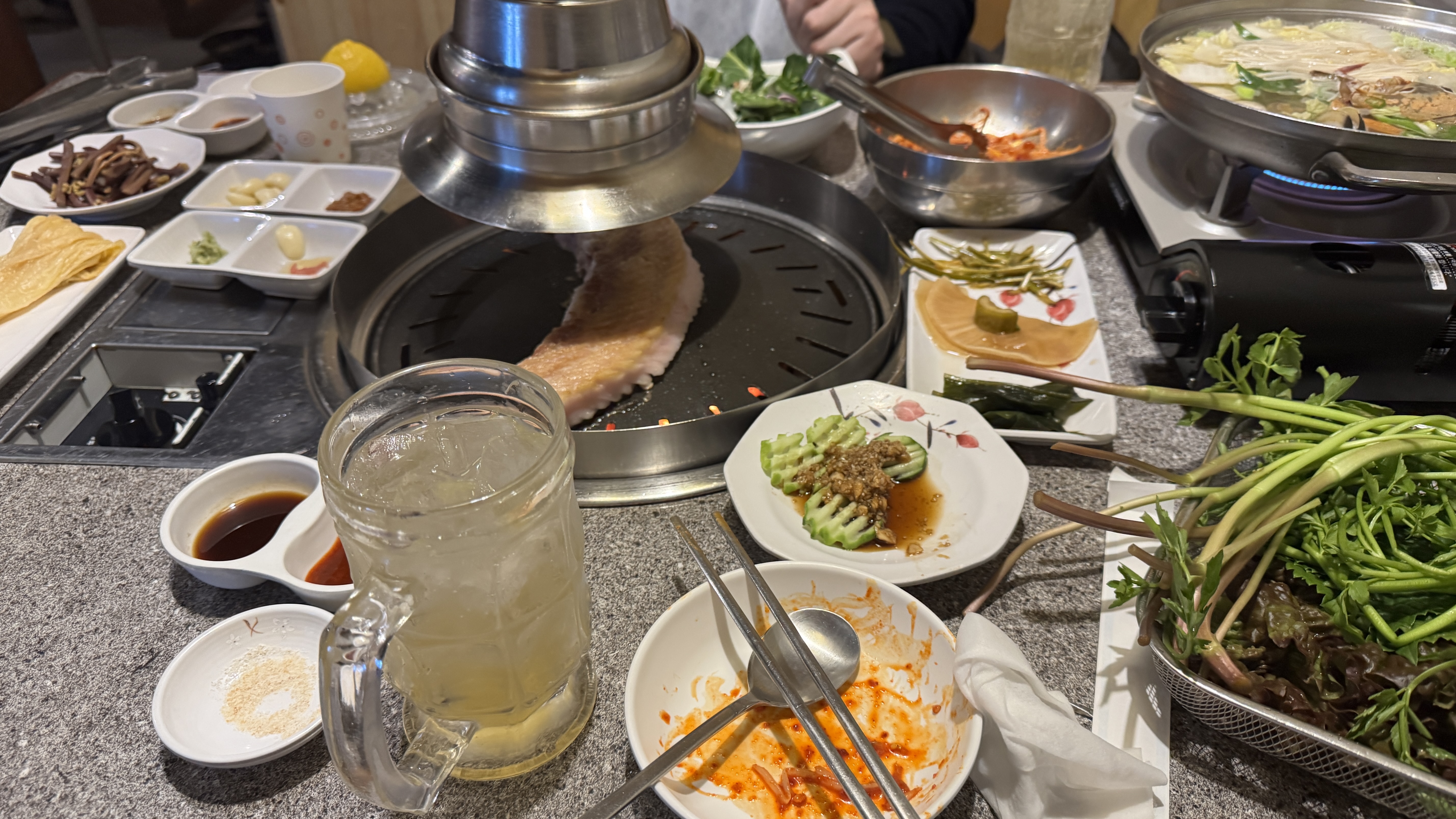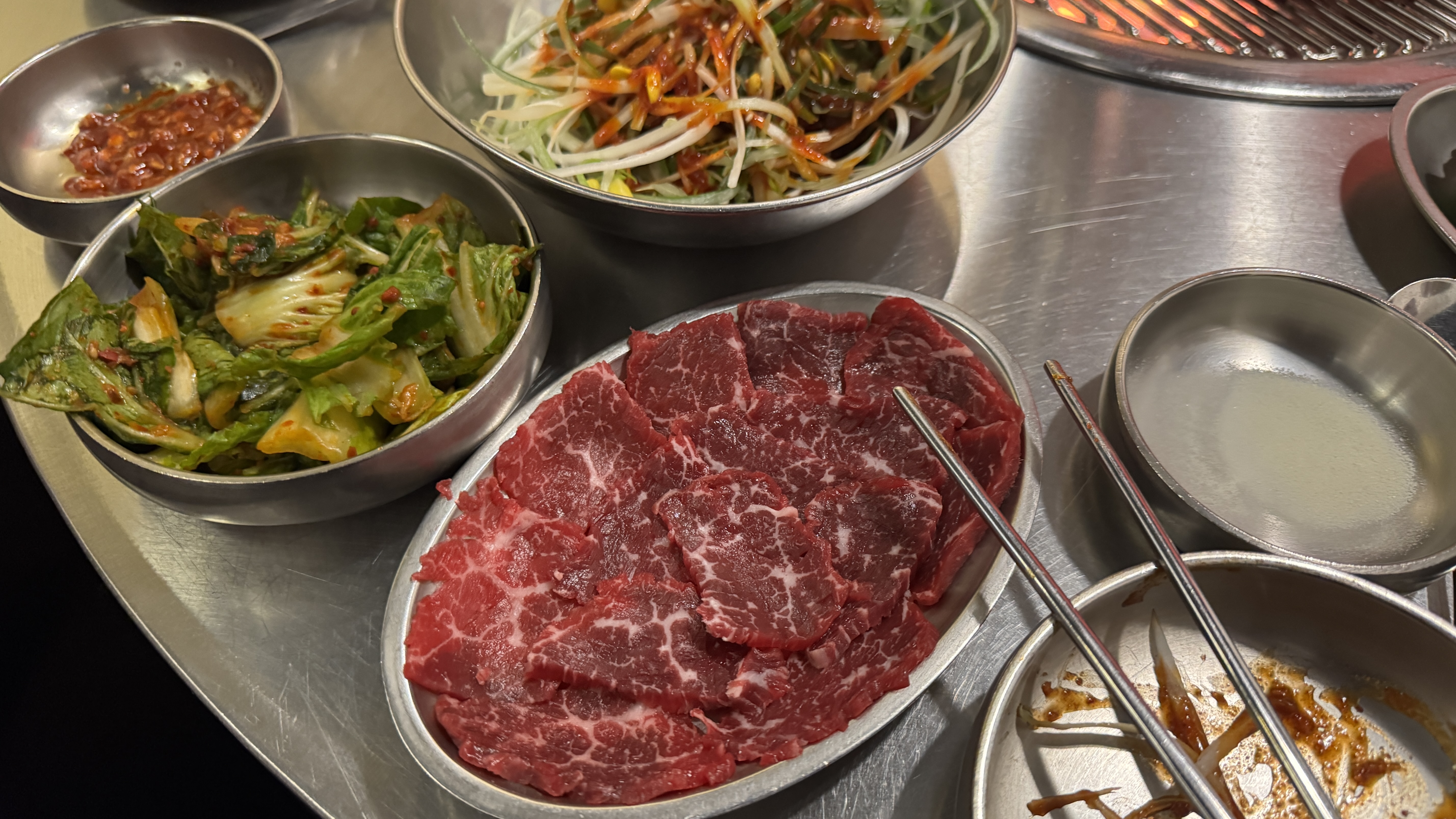 출장을 오게 되면 늘 하게 되는, 회사 동료들과의 저녁. 중국인 팀원인데 나보다 한국 출장을 더 많이 오다보니 이제는 이 친구가 나보다 출장지의 음식점을 더 잘 알아서, 추천한 고기집에서 저녁 한끼.