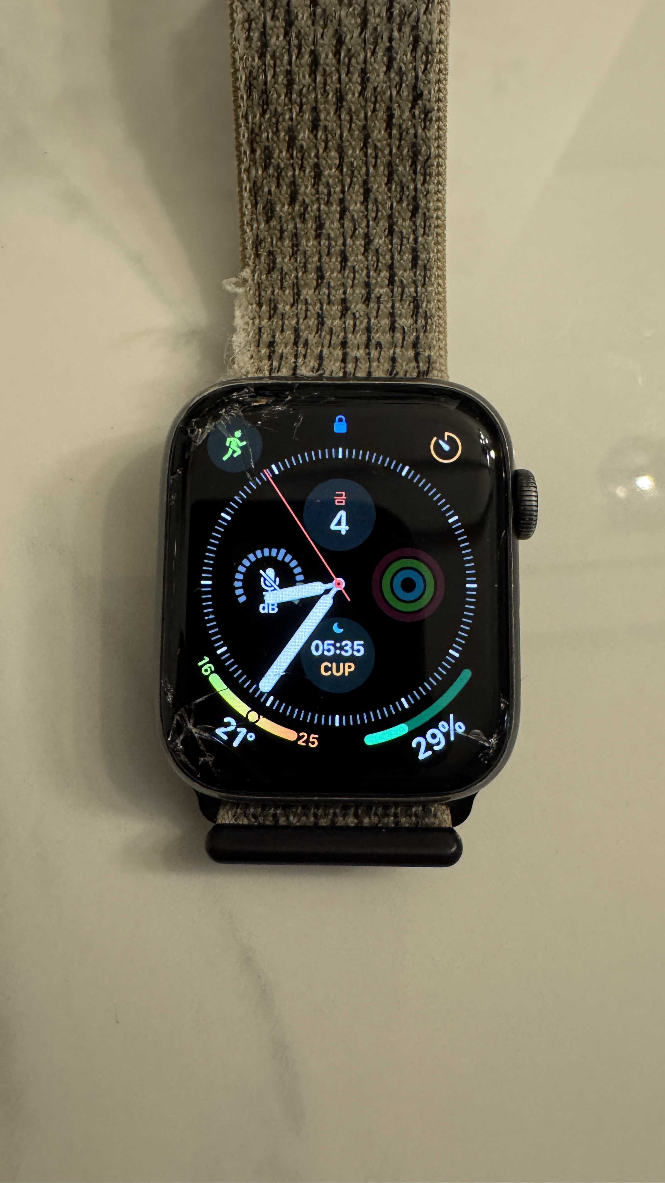 아기가 애플워치를 만지작 거리다가 바닥에 던지면서 워치의 유리와 완전히 깨졌었다. 굳이 유리를 바꿀 필요가 있을까 싶기도 하고, 이렇게 깨져버린 유리로 인해 고유한 워치가 되어버린 것