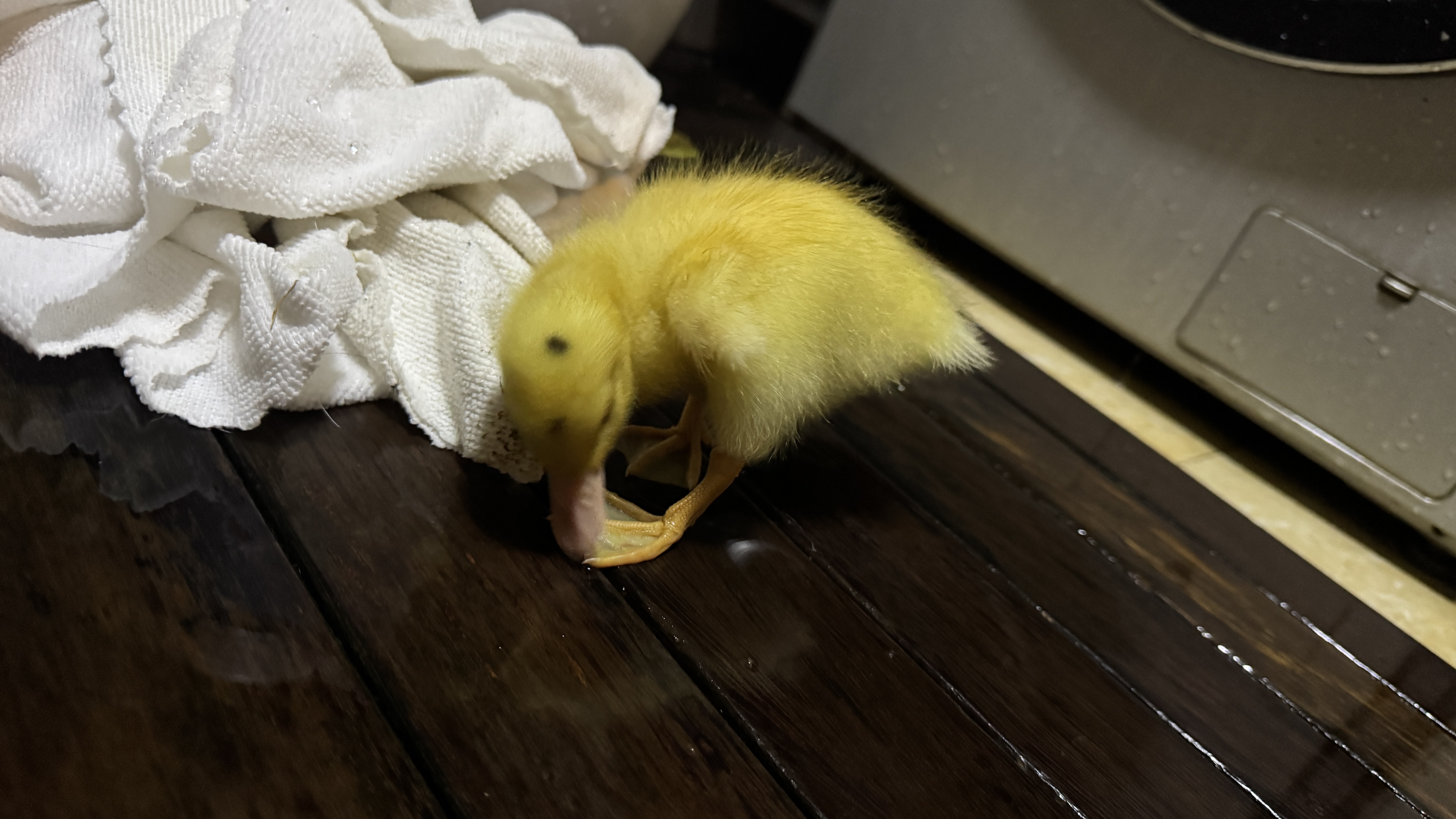 3주전쯤 밤에 아파트 단지 안에서 강아지를 산책시키다가 새끼 오리를 발견하였다. 우리를 보더니 쪼르르 달려와서 신발 옆이 바짝 달라붙어 있어서 구해달라고 하는 것 같아서 집에 데려오게 된 것이다. 사실 이 오리 새끼가 왜 밤에 바깥에 혼자서 있었는지는 쉽게 알 수 있었다. 아파트 내 입주민 채팅방에 누군가 자기 애를 위해서 오리 새끼를 샀는데, 집에 키울 수가 없어서 원하는 사람이 있으면 주겠다고 하였다. 얼마 뒤 한 아줌마가 자기가 데려가겠다고 했다가 약속 시간이 한참 지나도 데려가지 앉다가 밤이 가까이 되서야 겨우 데려갔는데, 1시간도 되지 않아 자기 남편이 싫어한다고 채팅방에 말하고 그 뒤 말이 없었다. 이전에 원래 구매자가 오리 새끼의 사진도 올렸었는데, 오리 새끼를 판매한 업자가 구분하기 위해서 머리에 검은색 두개를 찍어 놓았는데, 딱 우리가 발견한 그 오리였던 것이다.