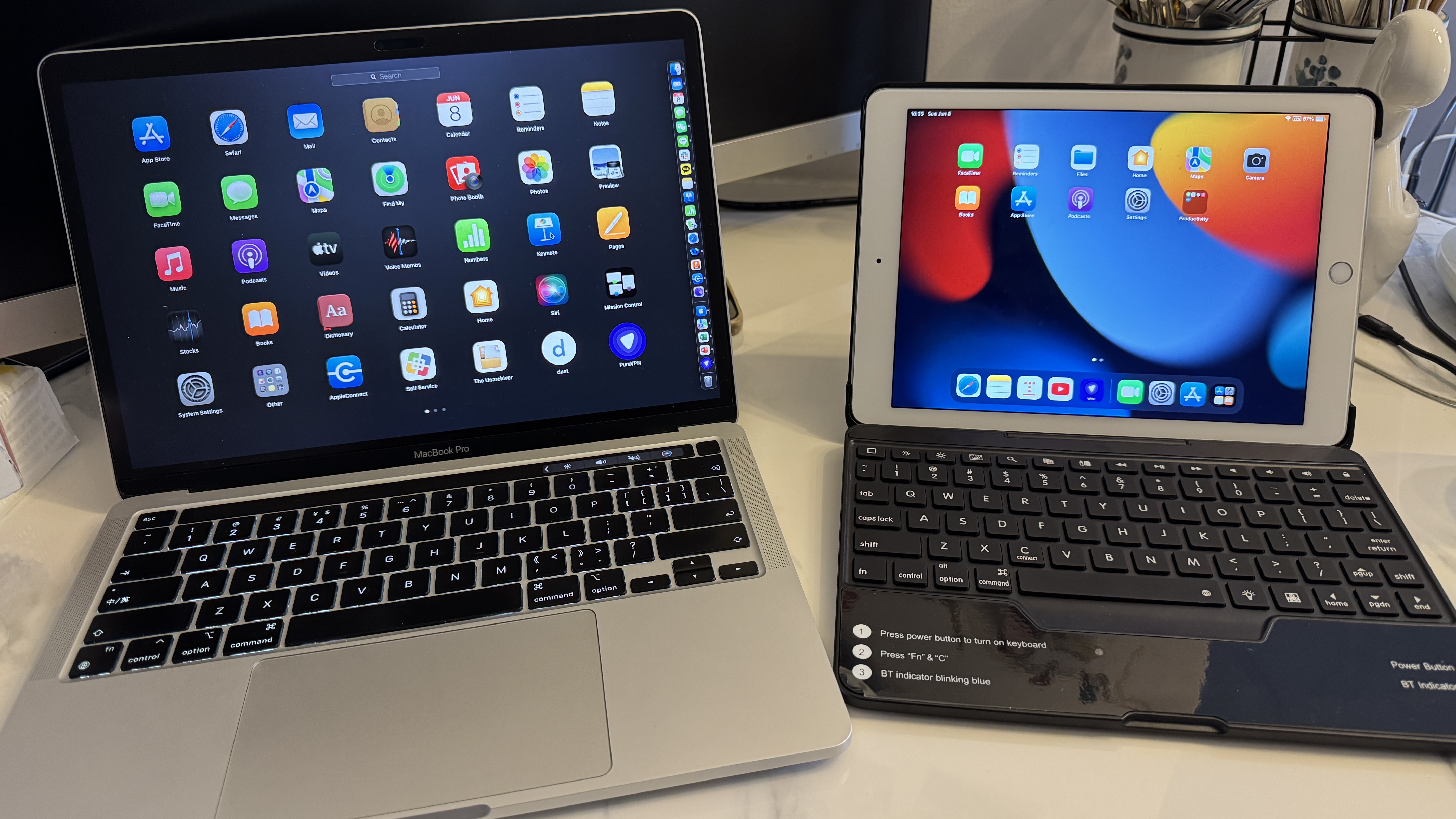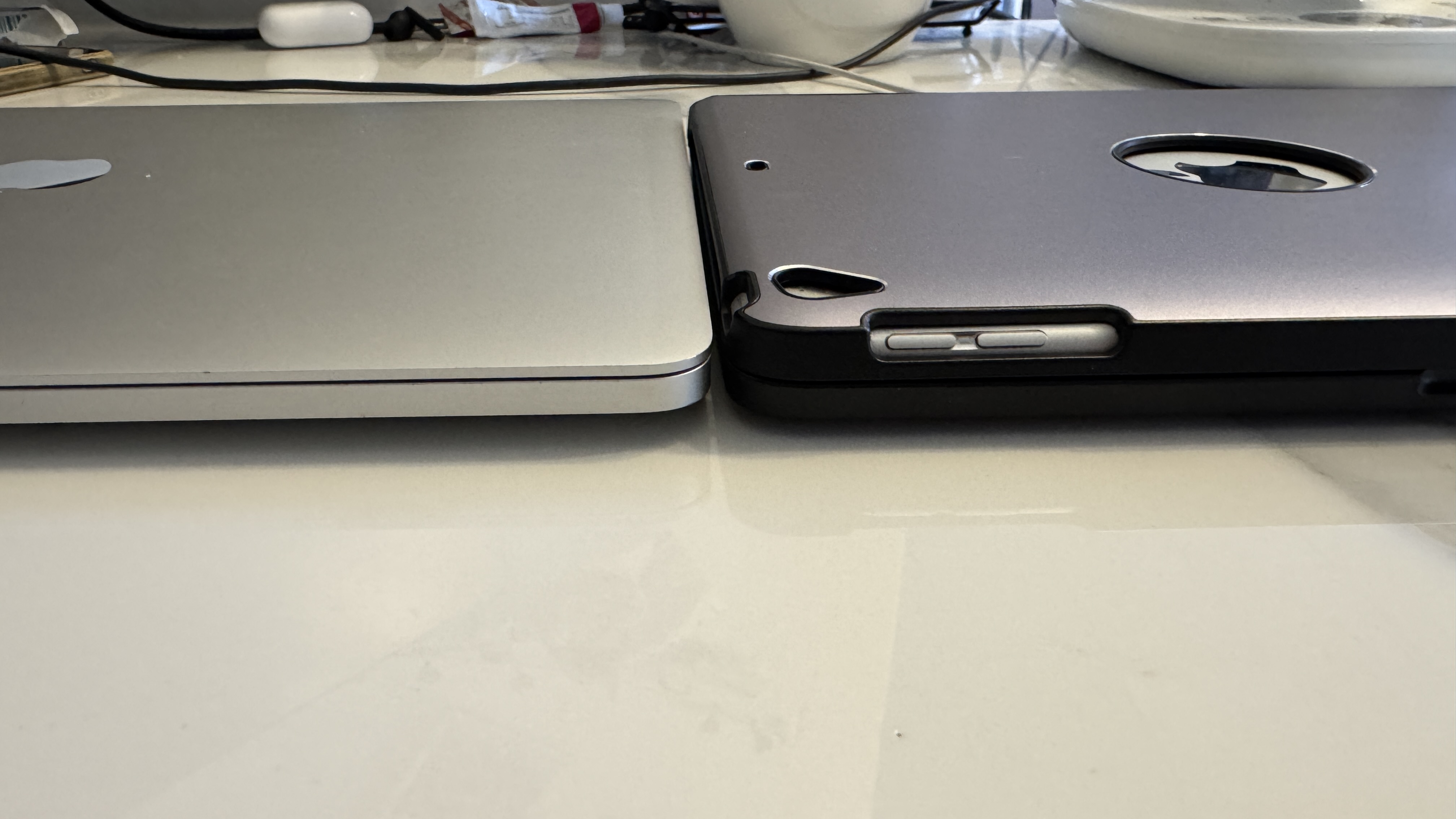 크기는 9.7인치 아이패드라 13인치 맥북에 비해 작지만, 두께는 더 두껍다...