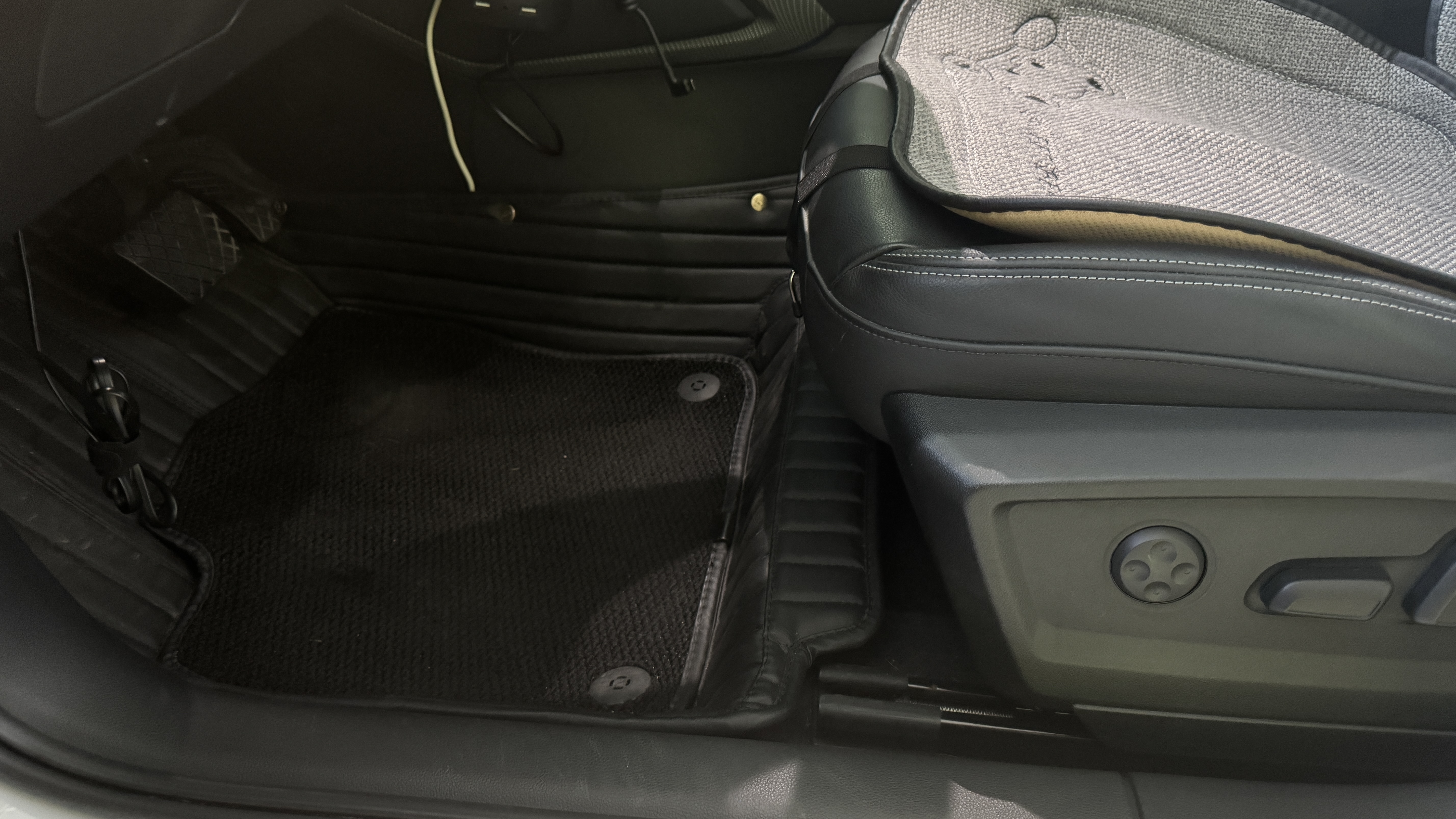 USB 케이블을 트렁크에서 뒷자석의 틈새로 빼낸 후 시트 아래쪽까지 가져와 바닥 옆면을 따라서 운전선까지 빼주어야 했다.
