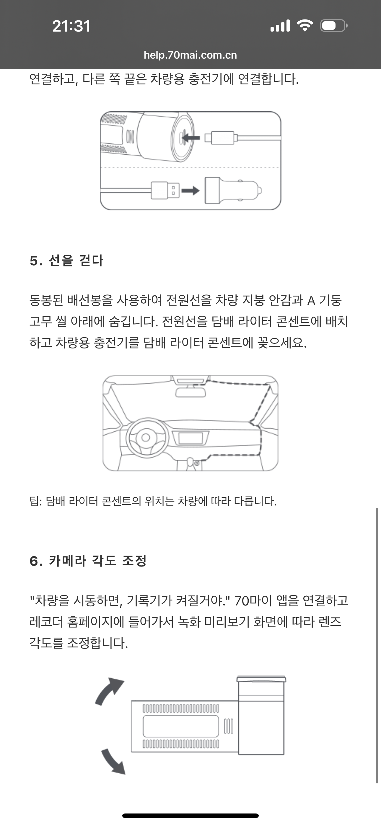 룸미러로 보면 더이상 케이블이 거슬리지 않는다