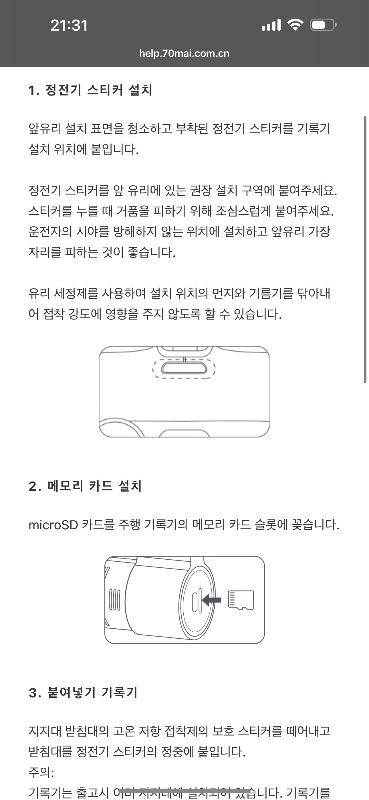 운전석에서 보니 룸미러로 볼 때 시야가 약간 가려서 위치를 조금 더 위로 올려야 했다. 트렁크쪽에는 케이블 정리가 아직 안되어서 그냥 저렇게 널부러져 있다. 128GB 삼성 마이크로 SD카드도 구매해서 장착. 이런 블랙박스나 비디오 저장용 마이크로 SD카드는 저렴한 중국산을 사용하면 플래시 메모리 수명이 짧아서 그런지 1년정도 사용하면 SD카드가 고장나서 인식이 되지 않는다.