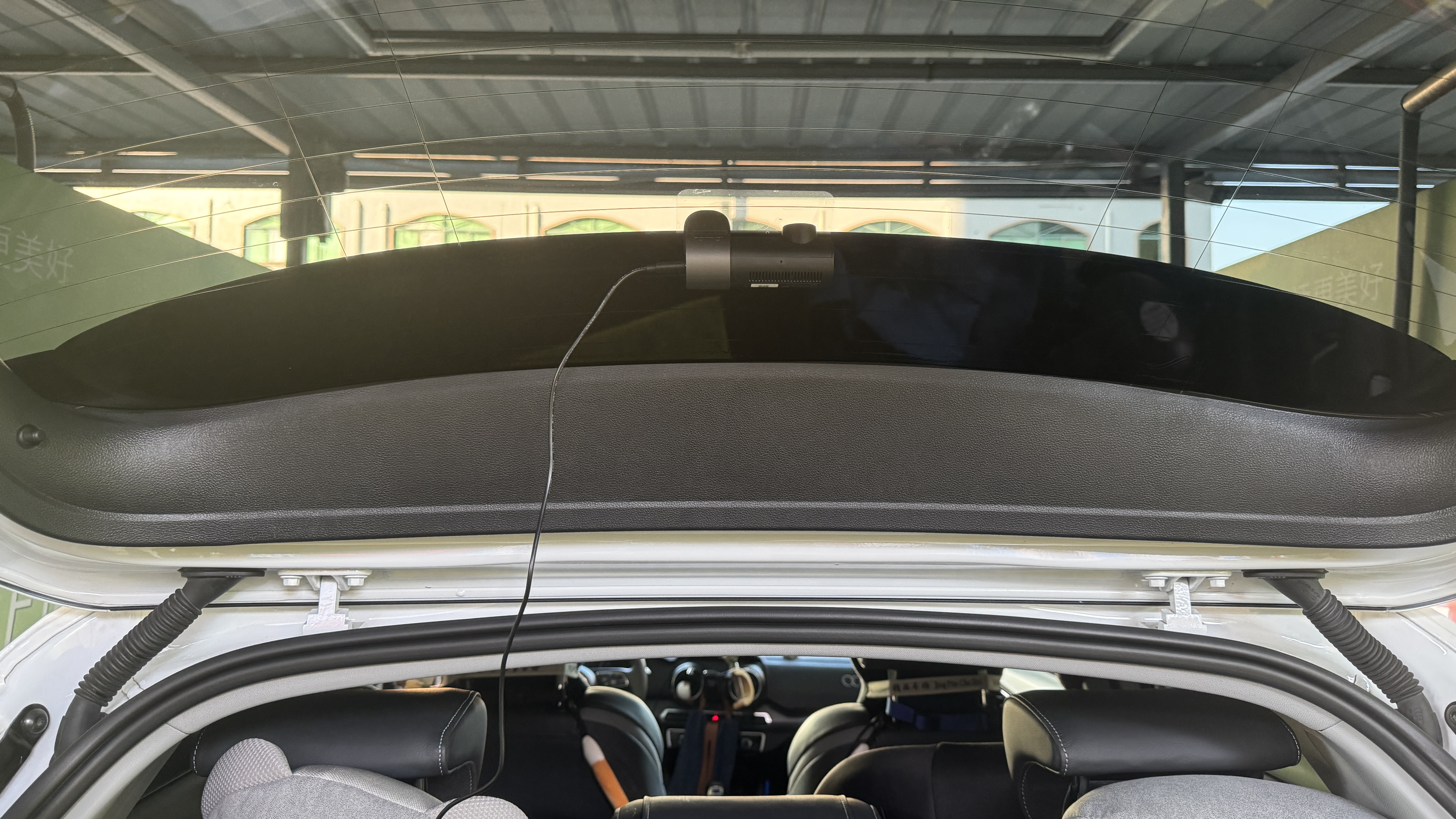셀프 세차를 끝내고 블랙박스를 설치하기 시작. 창문 아래쪽에 하려고 했으나 와이퍼블레이드에 가려서 창문의 위쪽에 설치해야 했다.