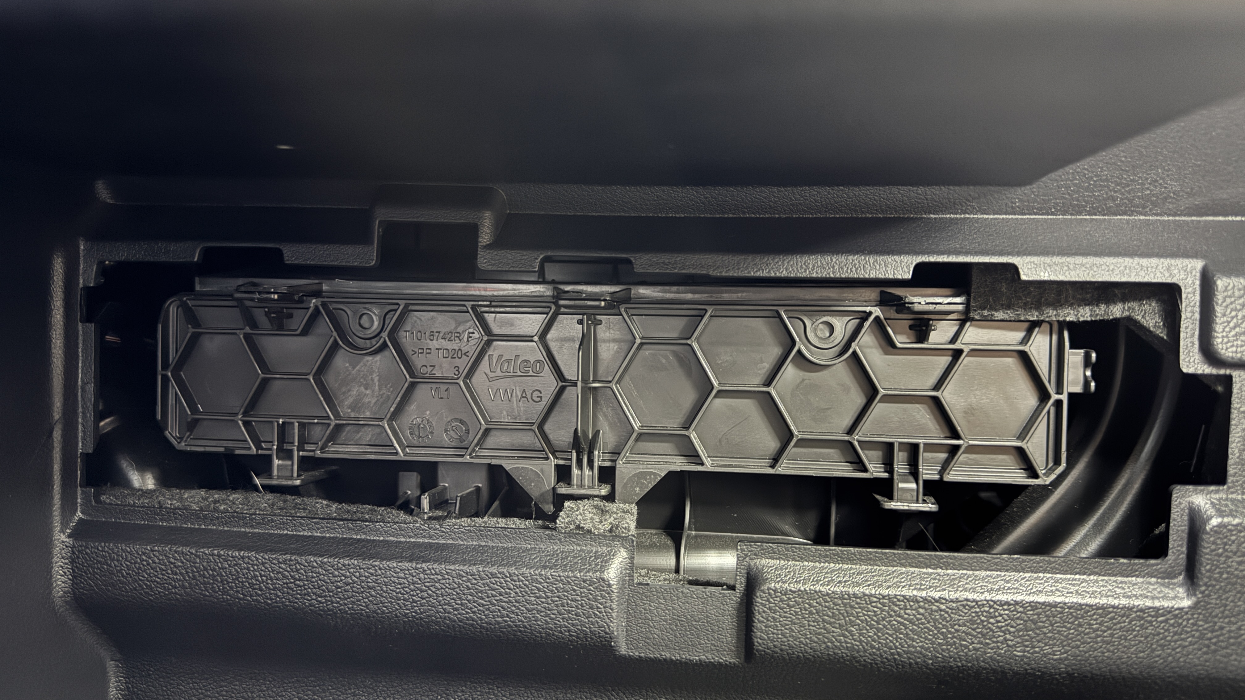글러브 박스를 열고 안쪽을 보면 덮개가 나오는데 걸쇠를 살짝 밀어서 풀어서 뚜껑을 걷어내면 된다.