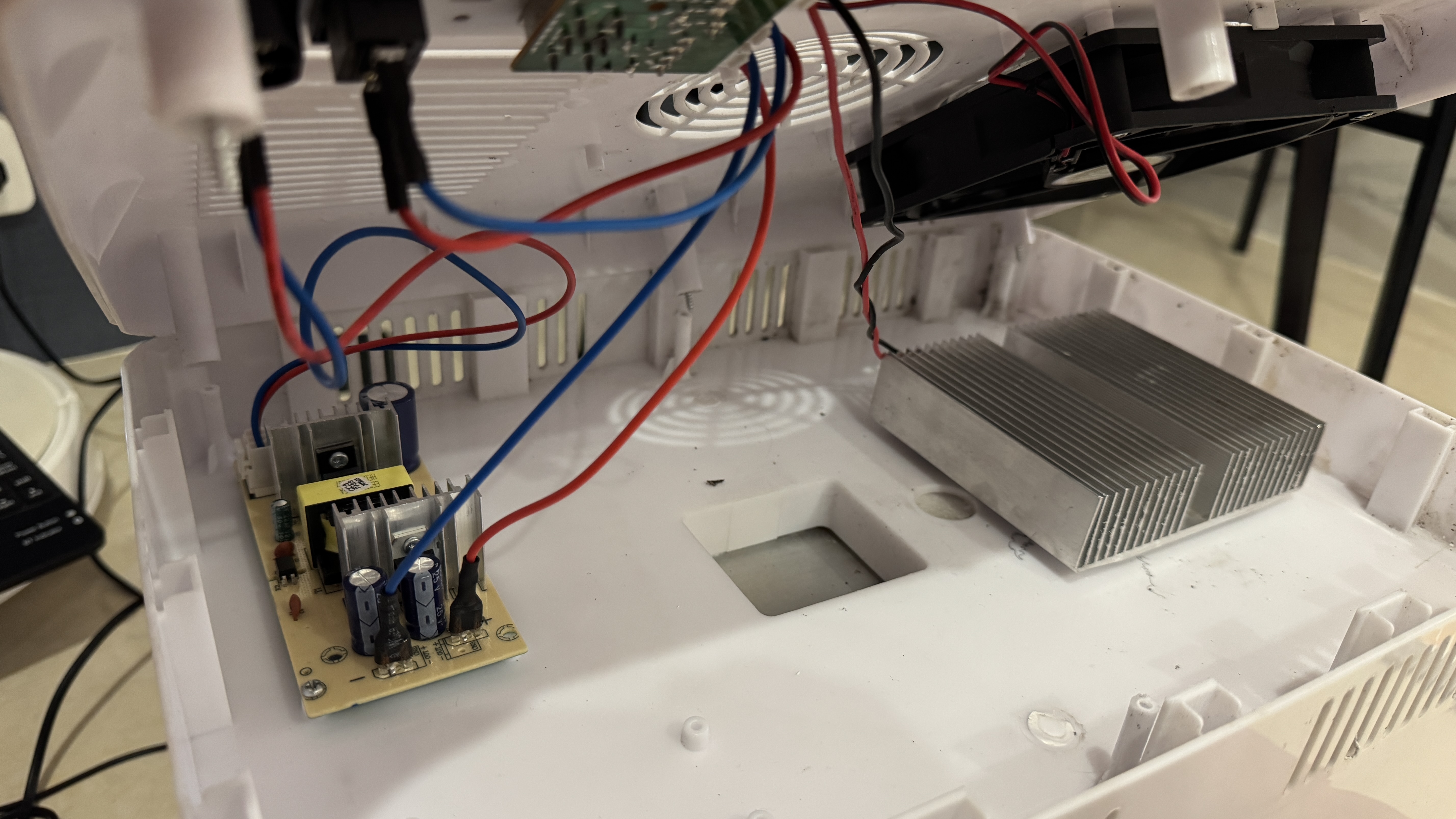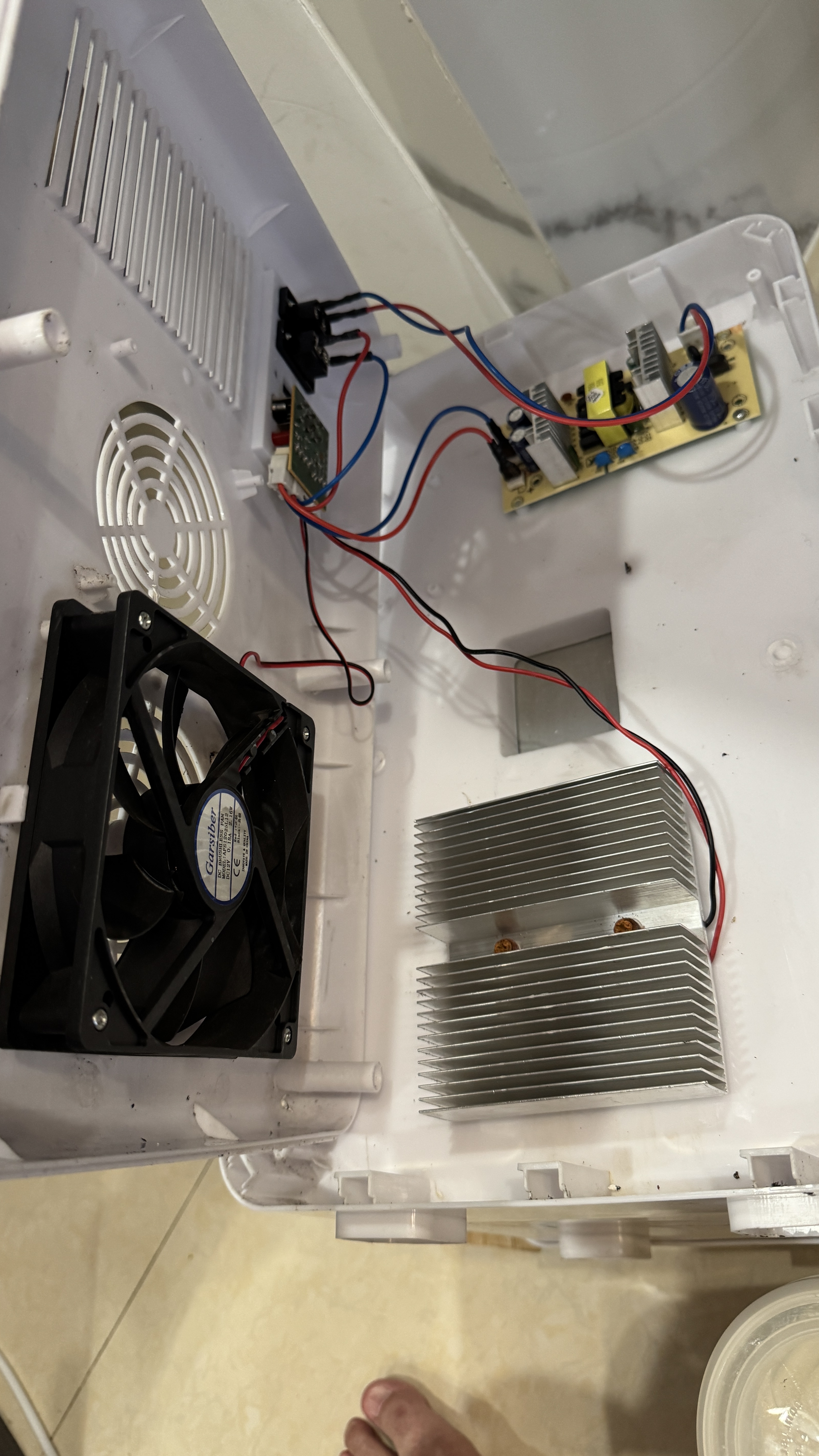 이번에는 팬과 열전소자 모두 제대로 동작한다. 열전소자가 동작하는지는 몇초~몇분이 지난 뒤 냉장고 안쪽에 열전소자와 붙어 있는 금속판을 만져보면 차갑게 온도가 떨어진 것을 알 수 있다.