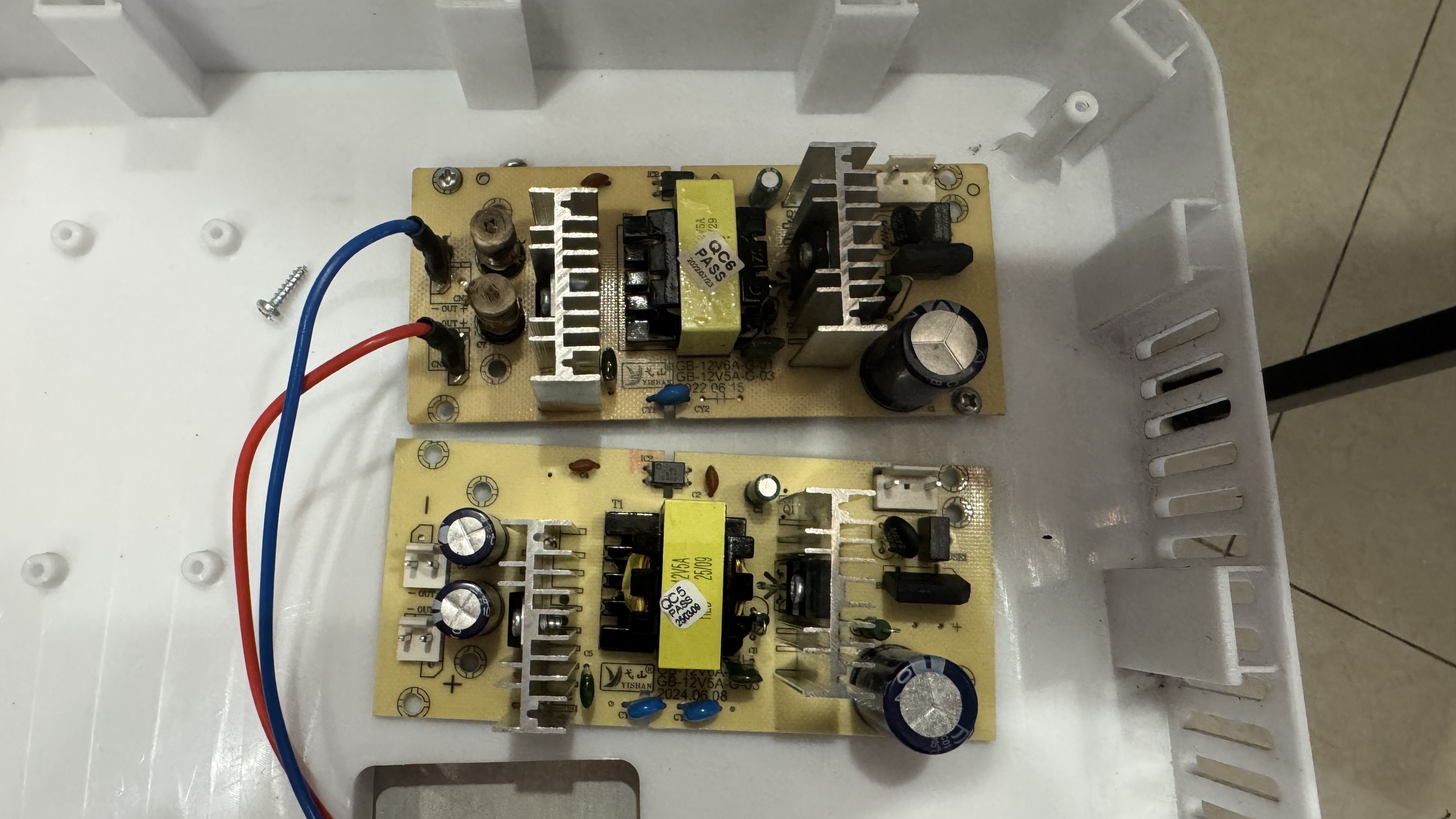 사진을 찍어서 타오바오에서 검색해 보니 33위안에 동일한 보드를 구매할 수 있었다. 망가진 기존 보드와 새로 구매한 보드. 겉으로 보기에는 똑같아 보여서 구매했는데, 보드 교체 후 조립하여 테스트 해보니 작동하지 않아서 다시 확인해 보니 보드 왼쪽에 전력 분배 단자의 모양이 달랐다. 결국 이 보드는 환불 후 정말 똑같이 생긴 보드를 다시 구매 하였다.