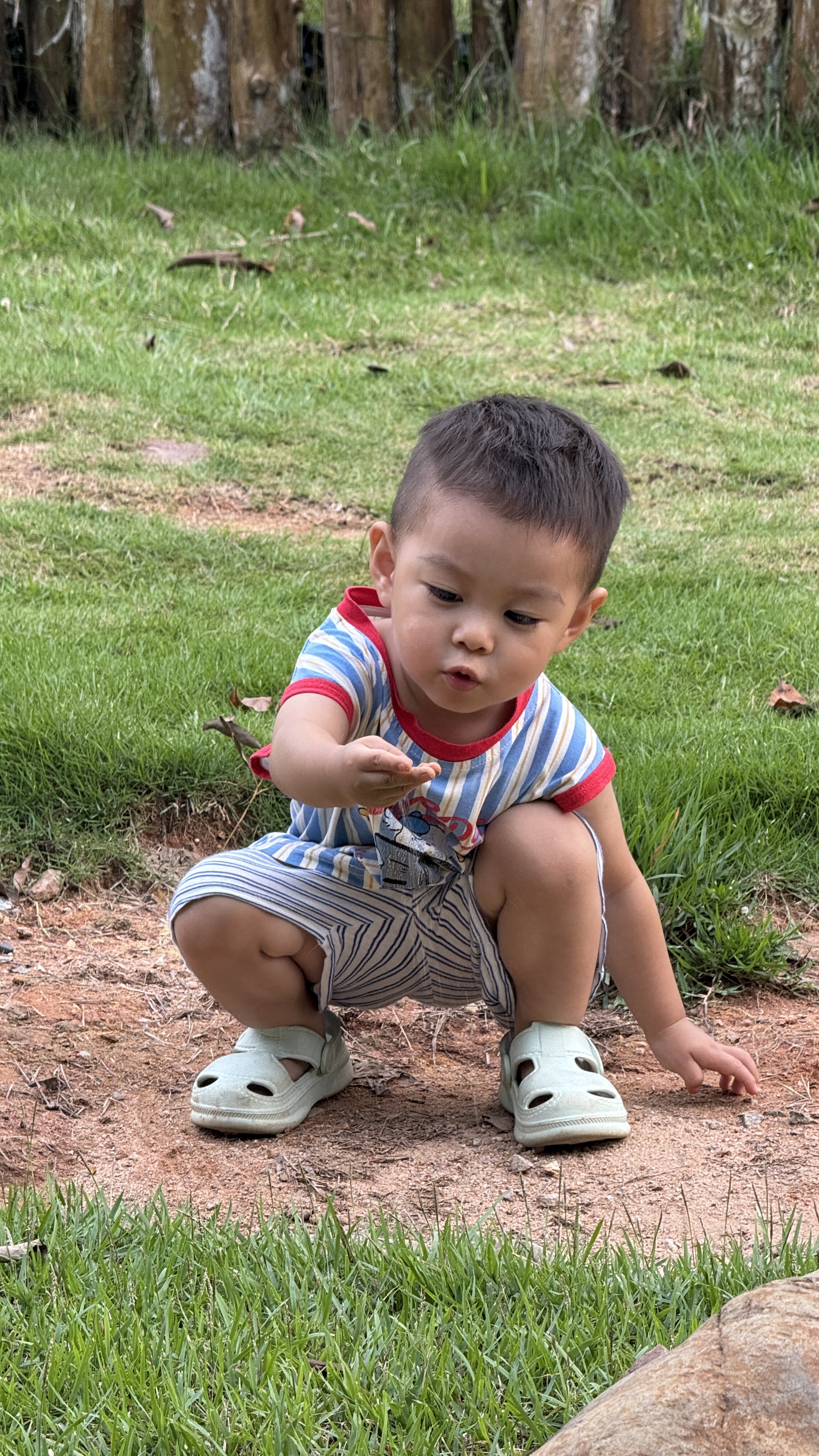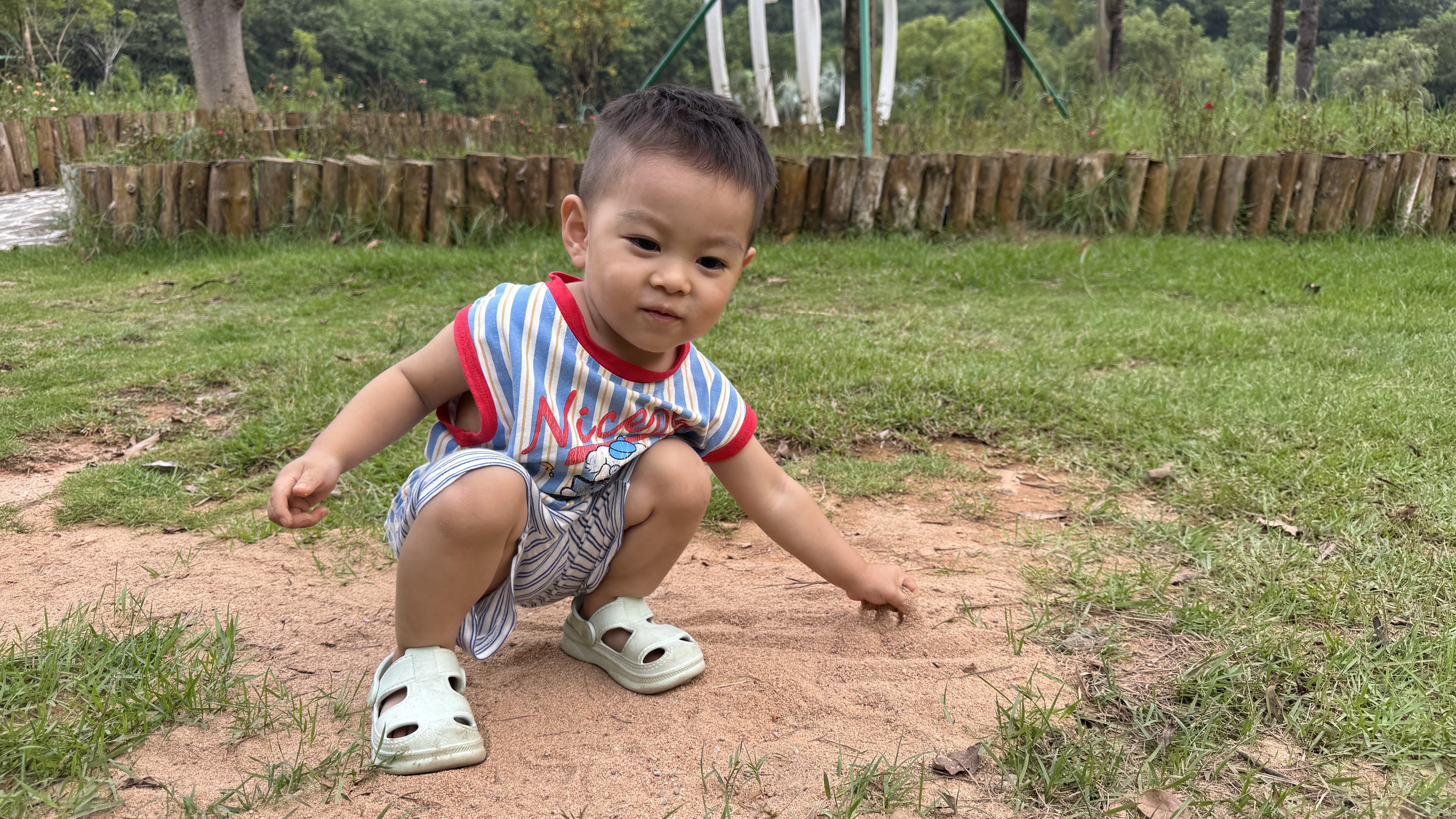 넓은 공원에서 작은 공간에 있는 흙만 가지고 놀고 잠깐 주변을 걸어다니다가 돌아갔다.
