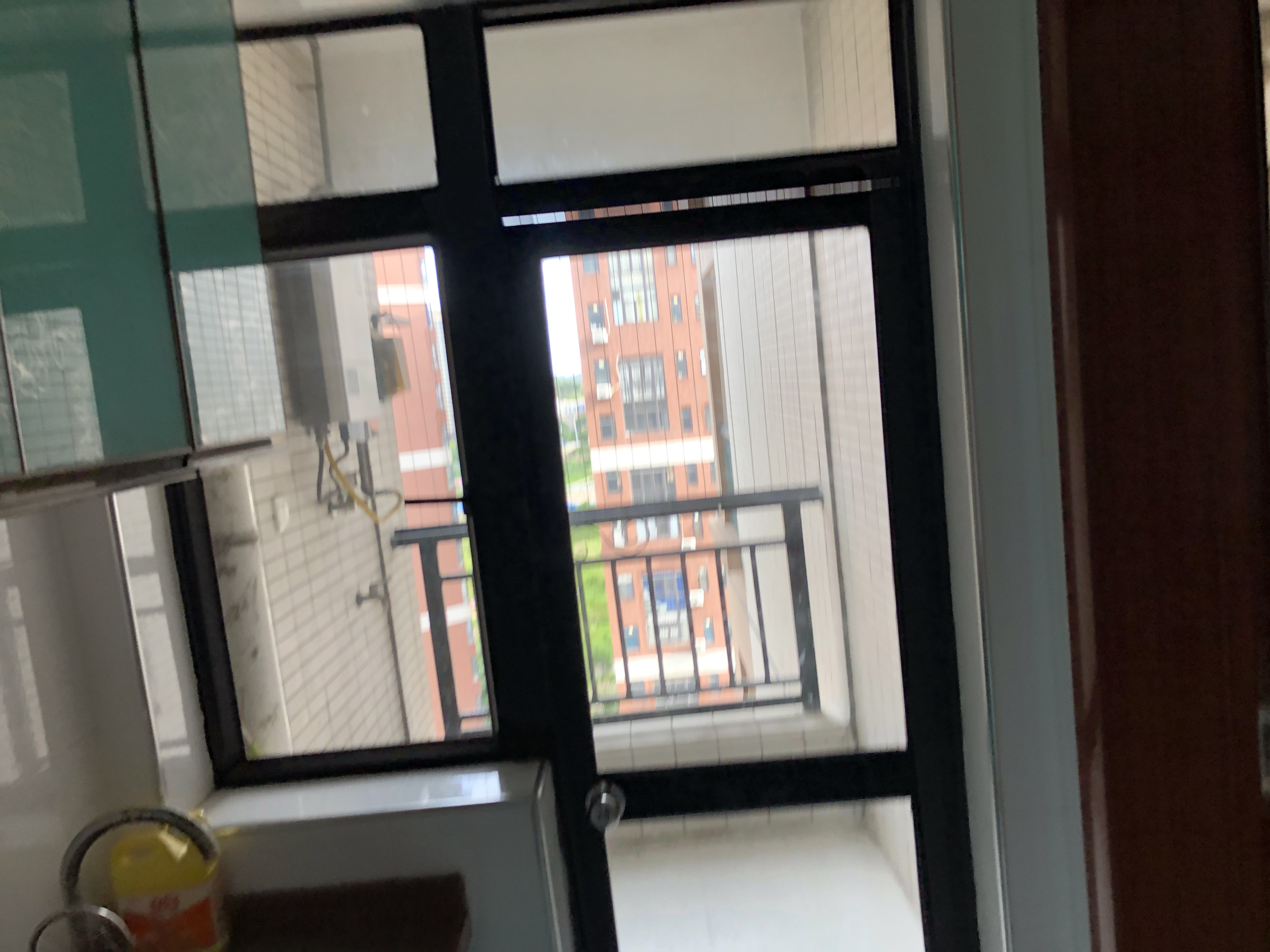 그 오른쪽에는 싱크대가 있고 바로 문으로 작은 베란다가 있었다. 아마 세탁실로 사용했던 듯 한데, 특이하게 냉장고를 놓았던 곳이 없는데, 이렇게 주방이 작은 중국 아파트들은 냉장고를 거실에다가 놓는 경우가 많다.