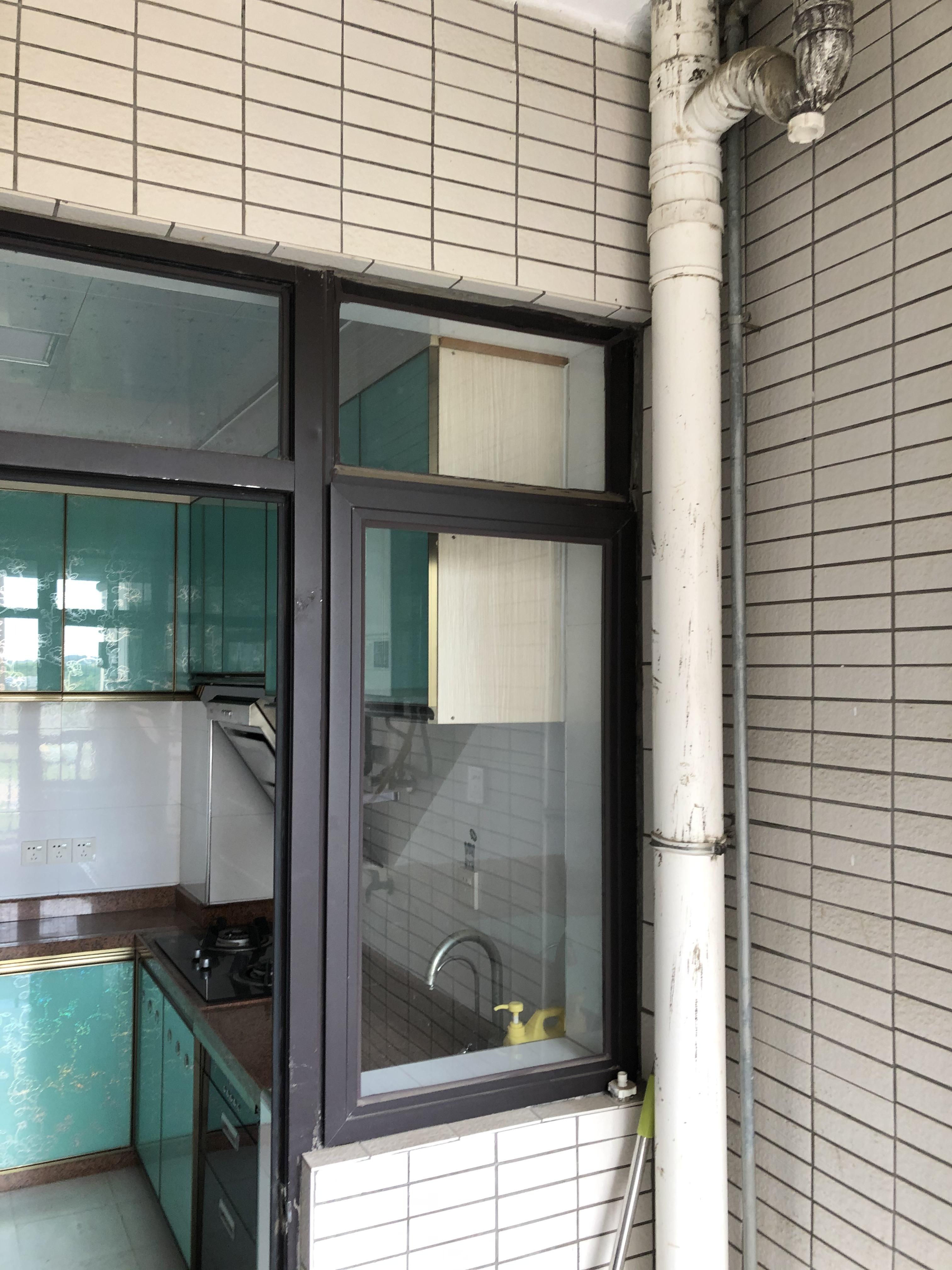 주방 옆에 있는 베란다에는 우수관과 도시가스를 사용하는 보일러가 설치되어 있다. 사실 이 공간은 죽은 공간인데, 세탁기를 설치한다고 하더라고 빨래를 말리기 위해서는 다시 거실에 있는 베란다로 가야하는 수고가 필요한 곳이다. 외부로 노출되어 있어 청소도 하기 어렵고, 청소를 해봤자 용도가 애매한 공간이라 이 곳을 주방과 합치기로 하였다. 이 주방 인테리어에 가장 큰 공사가 들어갔는데 이 두 공간을 합치고 창을 만들어 실내로 만드는 작업, 기존 싱크대 위치를 바꿔야 하기 때문에 바닥 배관 작업, 바닥 배관 작업을 위해서는 콘크리트 단계까지 다 들어내어 배관작업 후 방수 작업 및 타일 작업까지 해야 한다. 문을 넓히기 위해 내력벽을 제외한 거실벽 제거 및 배선 재배치. 환풍기 위치 및 환풍기 변경을 위해 천장을 들어내는 작업. 붙박이장과 선반의 디자인 및 자재 선정 후 설치 작업. 벽 타일 선정 및 설치. 싱크대 구매 및 설치. 도시가스 배관 확장 및 보일러 위치 변경, 그리고 중국정부의 보일러 위치변경에 대한 검사 및 승인 등 총 4~5개월 정도의 시간이 들어갔다.