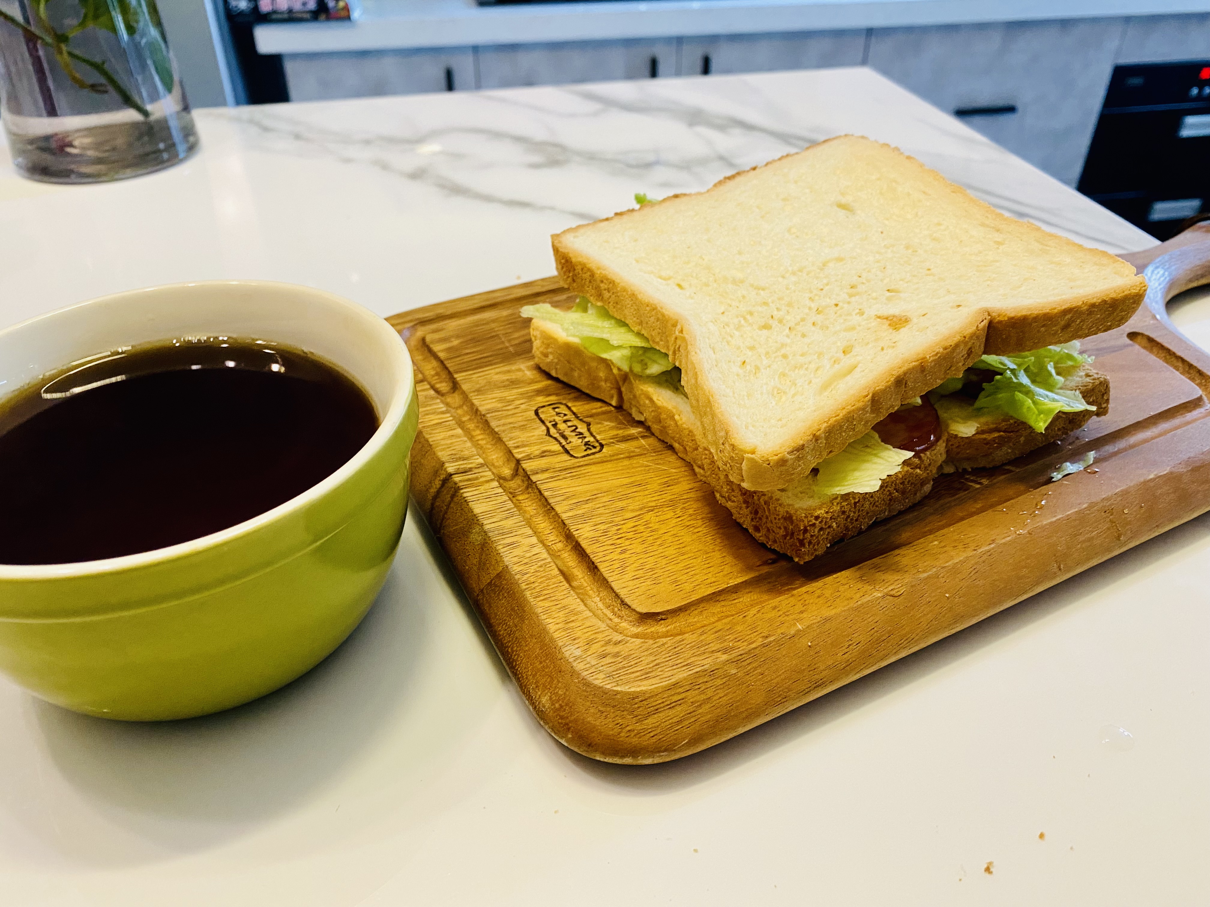 샌드위치야 원래 간단하기 때문에 '초간단' 샌드위치라고 말하기는 좀 뭣하지만, 최근에 재택근무를 하다보니 간단하게 점심을 먹기 위해서 샌드위치를 간간히 만들어 먹고 있다. 최근에 만들어 먹는 샌드위치는 햄, 치즈, 버터, 양상추를 식빵에 올려 먹는 것인데, 만드는 방법은 정말 간단해서 5~10분이면 만들어 먹을 수 있다.