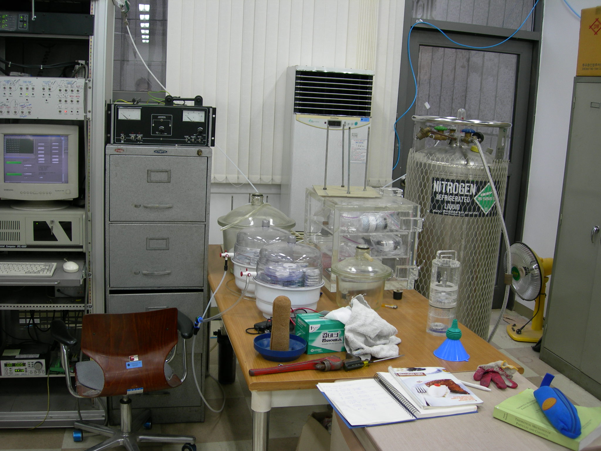 사진의 왼쪽 책상 위에 있는 DSC 장비. 당시의 데이터 자체는 쓸모가 전혀 없었지만, 나중에 회사에 와서 이때 이 장비를 쓰기 위해서 공부했던 것이 꽤 도움이 많이 되었다. 당연히 회사에서 사용한 DSC가 훨씬 좋고 간편하였다.